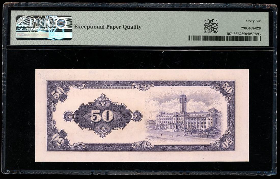 民國五十年台灣銀行伍拾圓,編號 D104281U,PMG 66EPQ