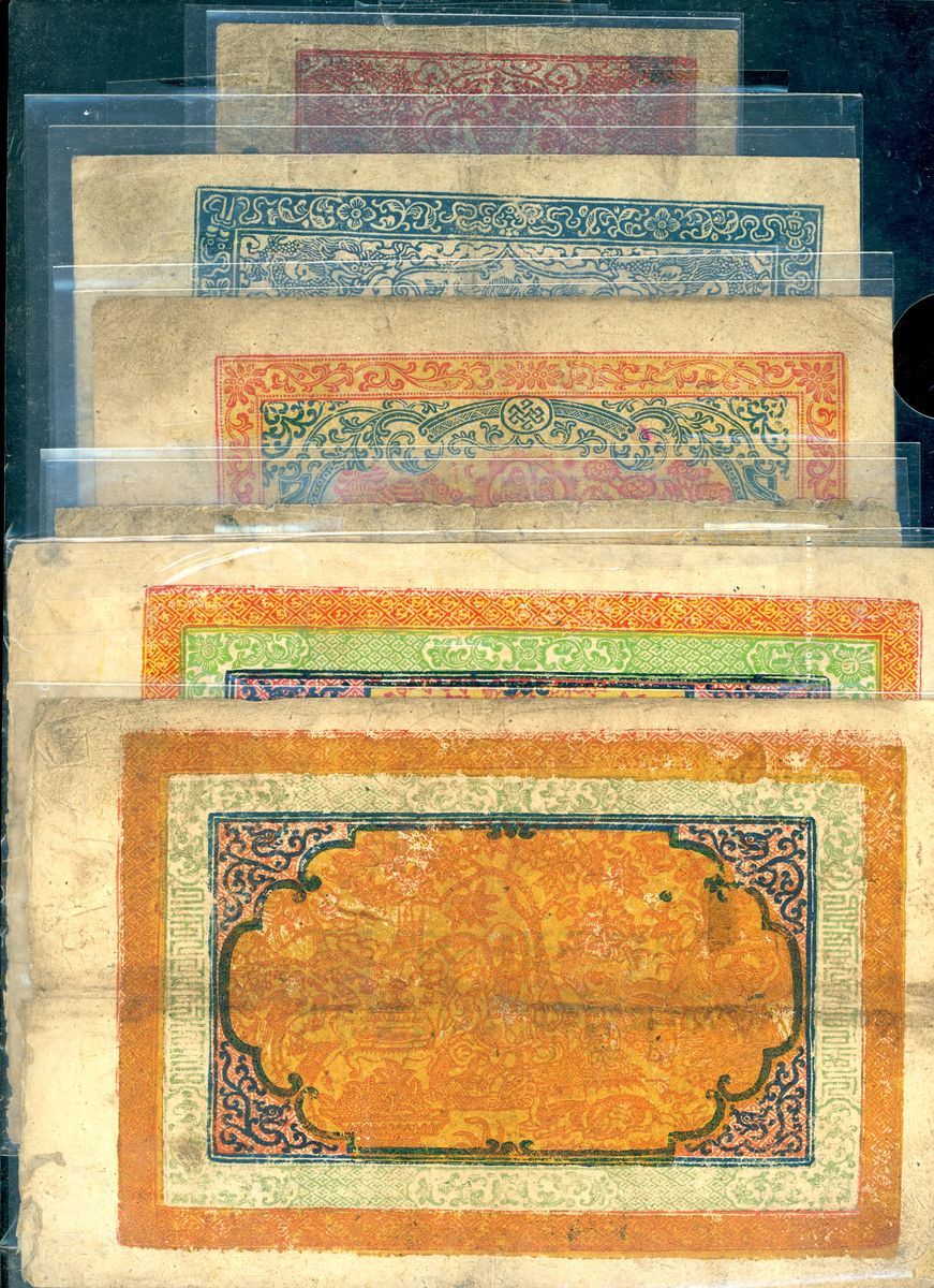 西藏紙鈔一組6枚,包括:5桑、10桑、25桑、50章噶及一對100桑,F至VF品相