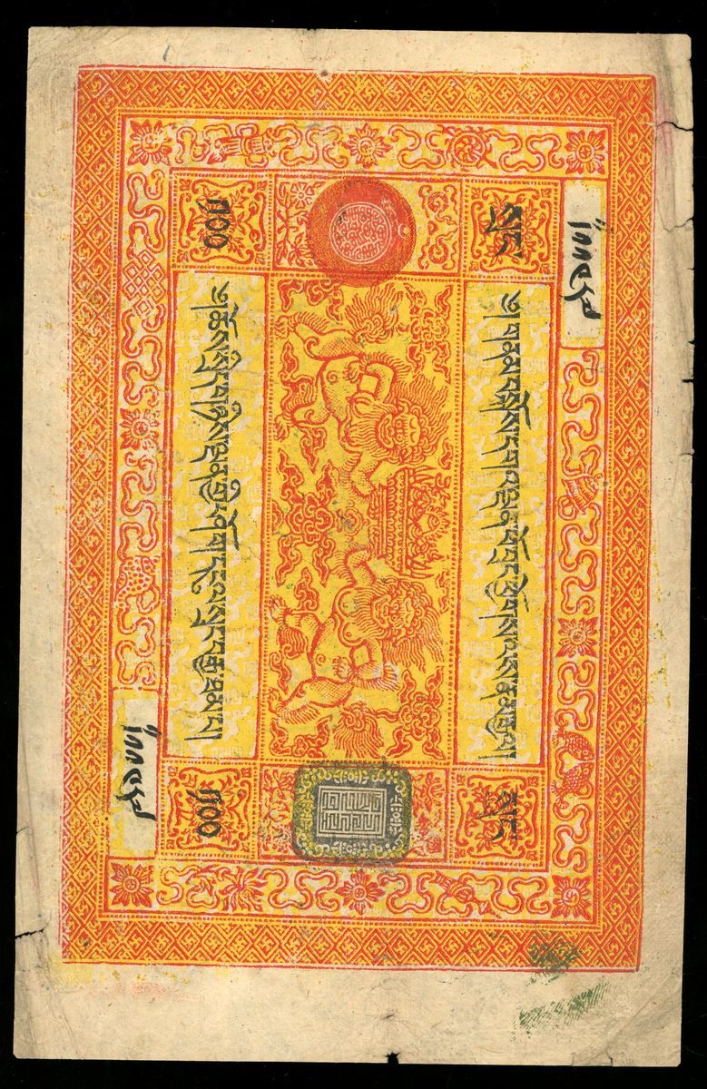 Tibet, China, 100 srang, ND (1942-59), 'Large Text' type, (Pick 11a), split, fine