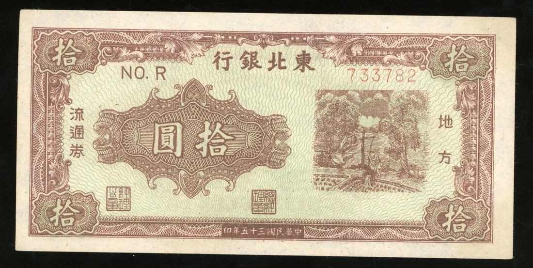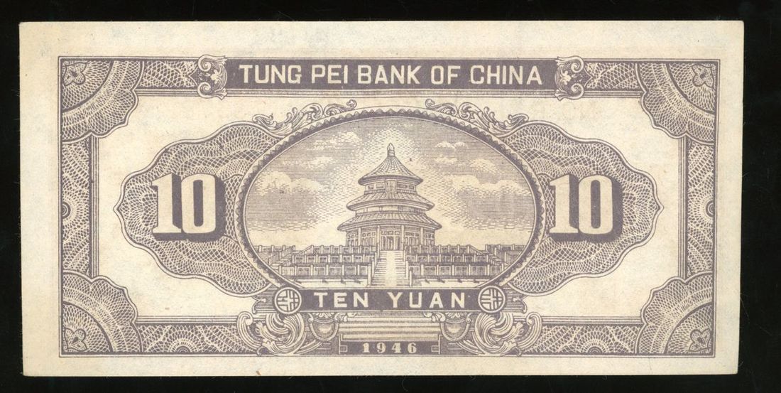 Tung Pei Bank of China, 10 yuan, 1946, serial number 733782, (Pick S3739), pressed, extremely fine