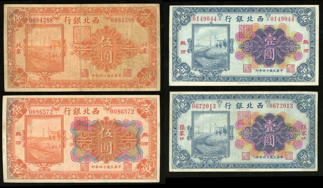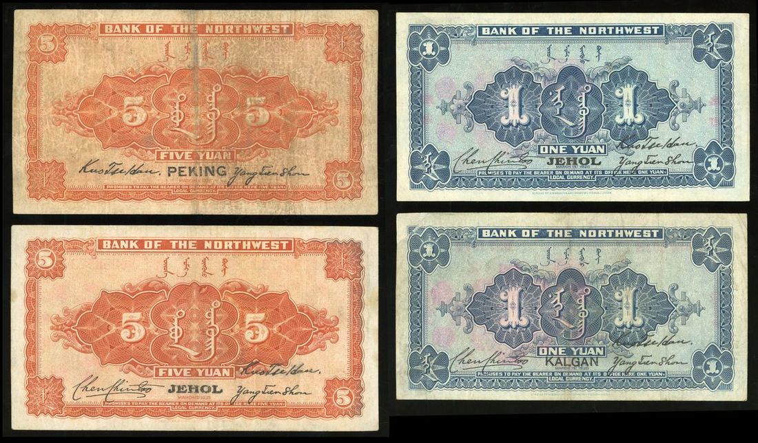 Bank of the NorthWest, China, a group of 4x, including, 1 yuan (2), Kalgan, Jehol, 5 yuan (2), Jehol, Peking, (Pick S3872a, b, S3873d, S3874a), very fine (4)