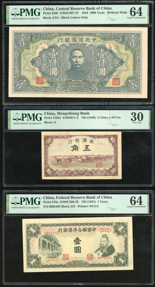 China, a group of 3x, including -Mengchiang Bank, 5 Chiao=50 Fen, ND(1940), block 11,