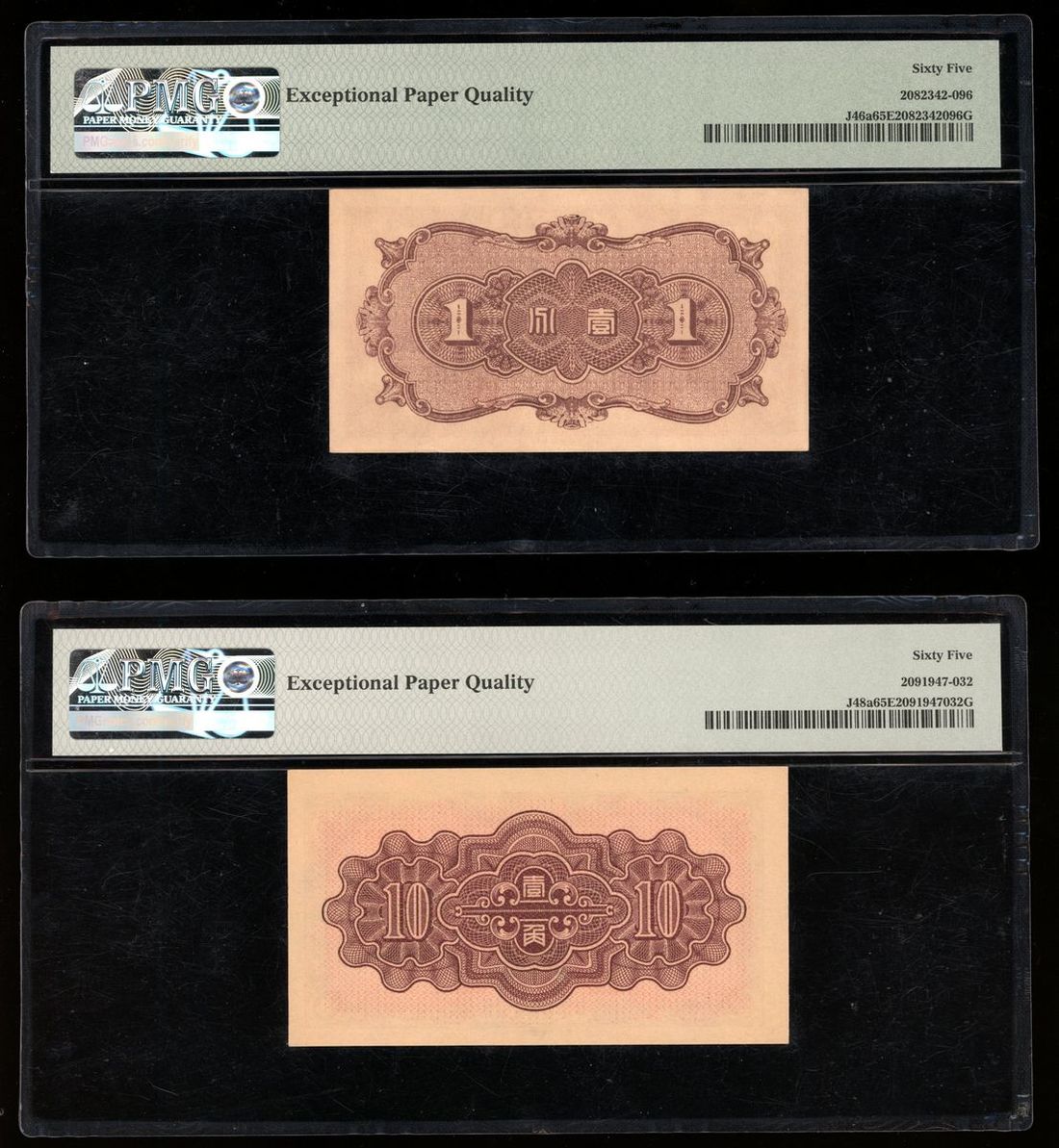 Federal Reserve Bank of China, a pair of 1938 issues, including 1 and 10 fen, (Pick J46a, J48a), both PMG 65EPQ (2)