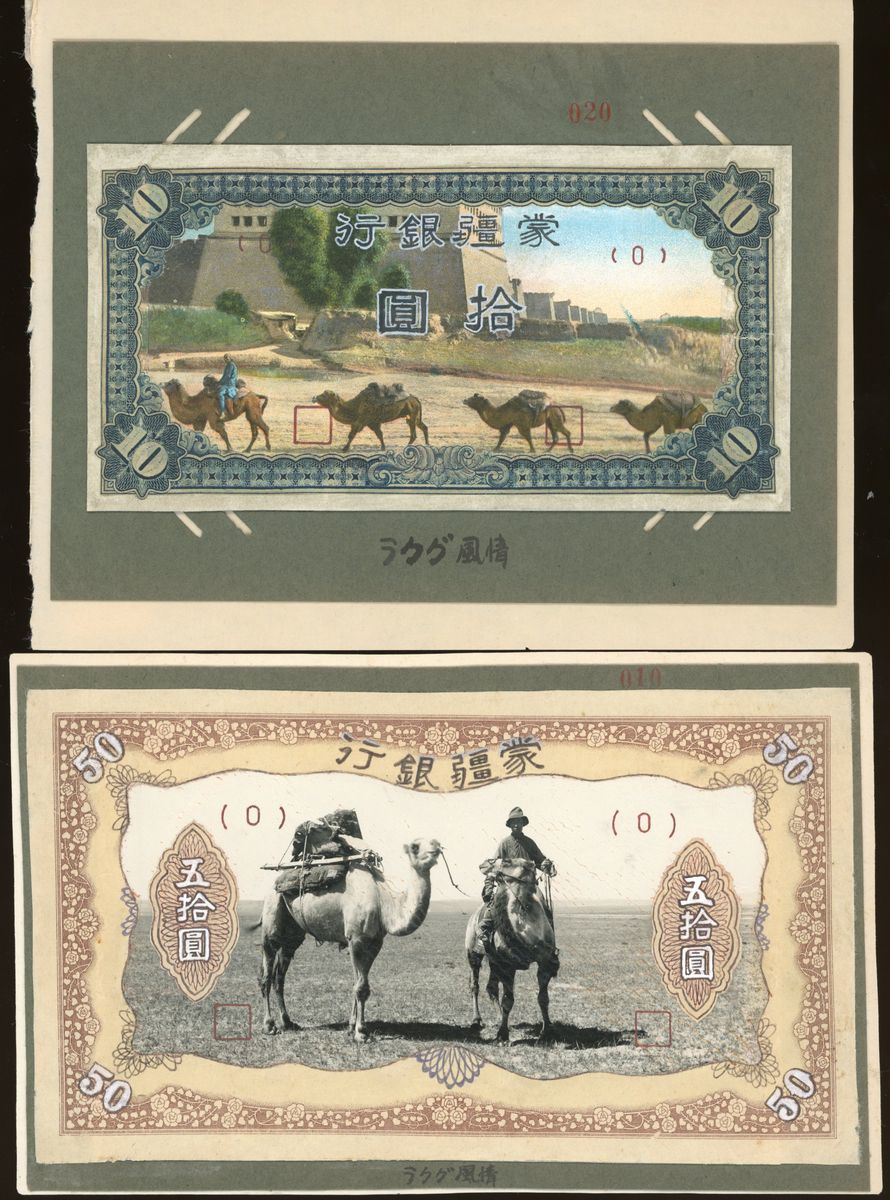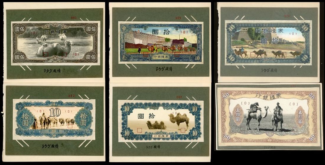 1938-45年蒙疆銀行一組6枚未發行合成設計,包括
