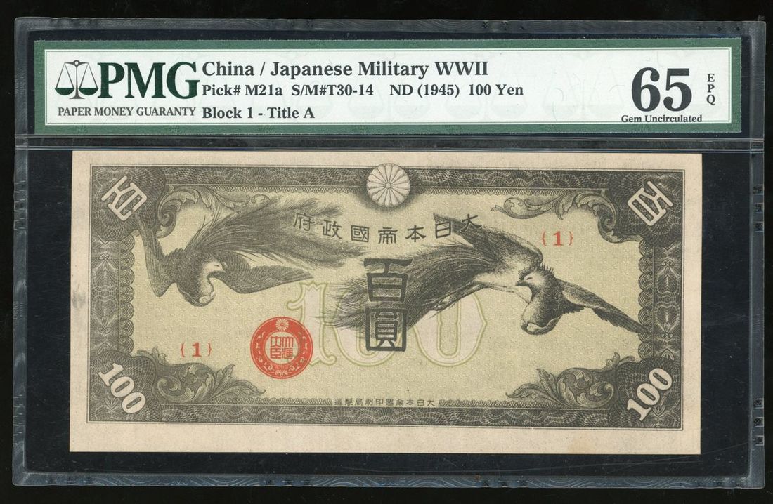 Japanese Military WWII, China, 100 Yen, ND (1945), block 1, (Pick M21a), PMG 65EPQ