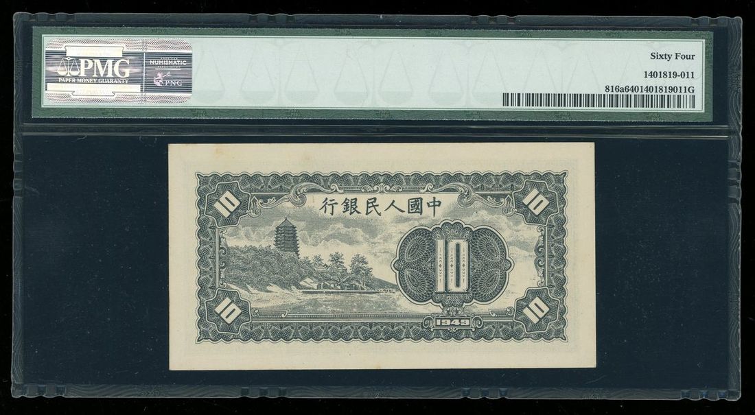 1949年中國人民銀行第一版人民幣10元,編號 I II III,54227149,PMG 64