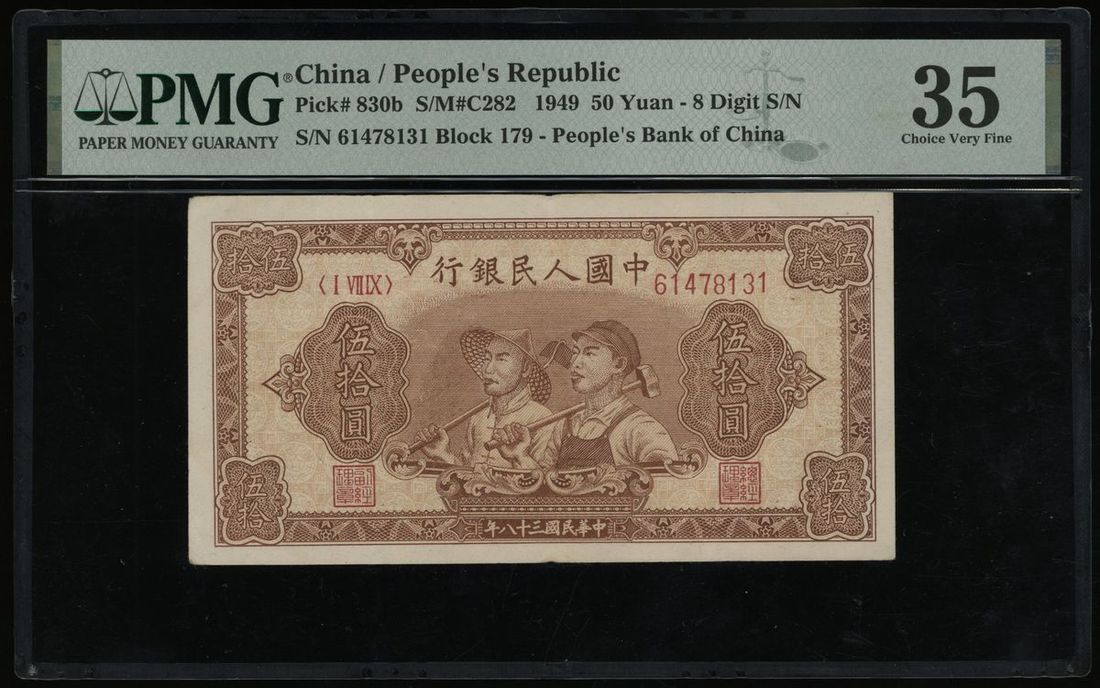 1949年中國人民銀行一版人民幣50元「工農」,編號I VII IX 61478131, PMG35