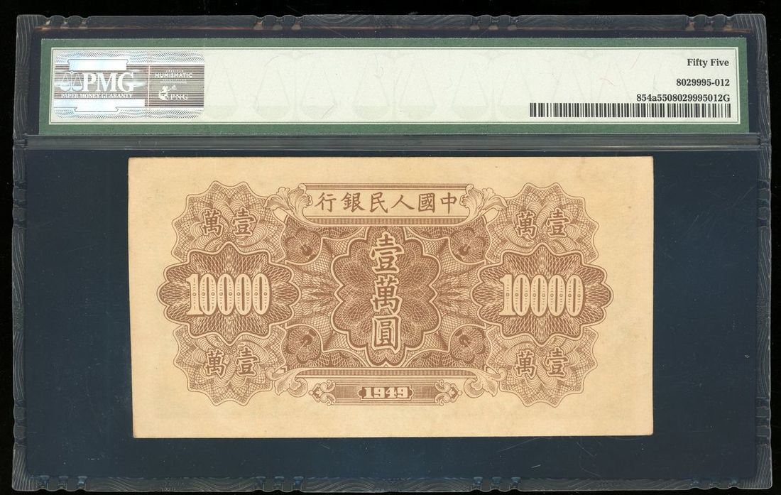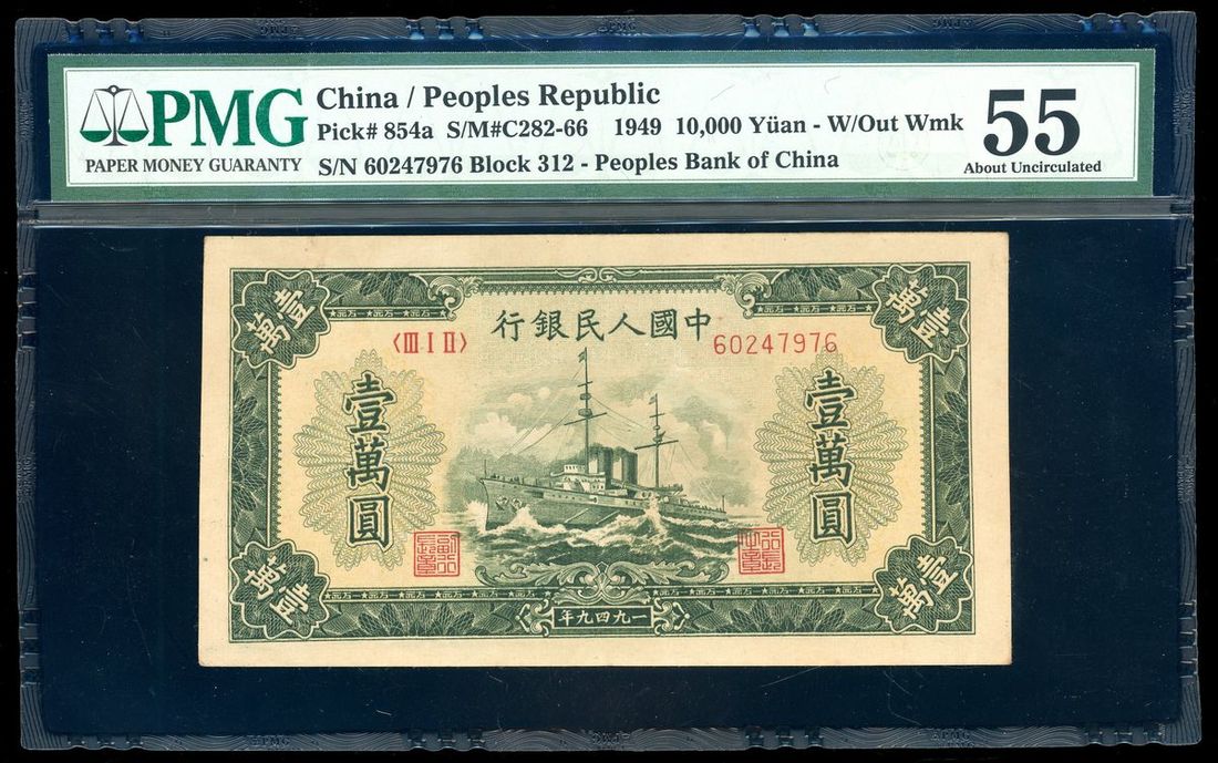 1949年中國人民銀行第一版人民幣壹萬圓「軍艦」,編號III I II 60247976,PMG 55