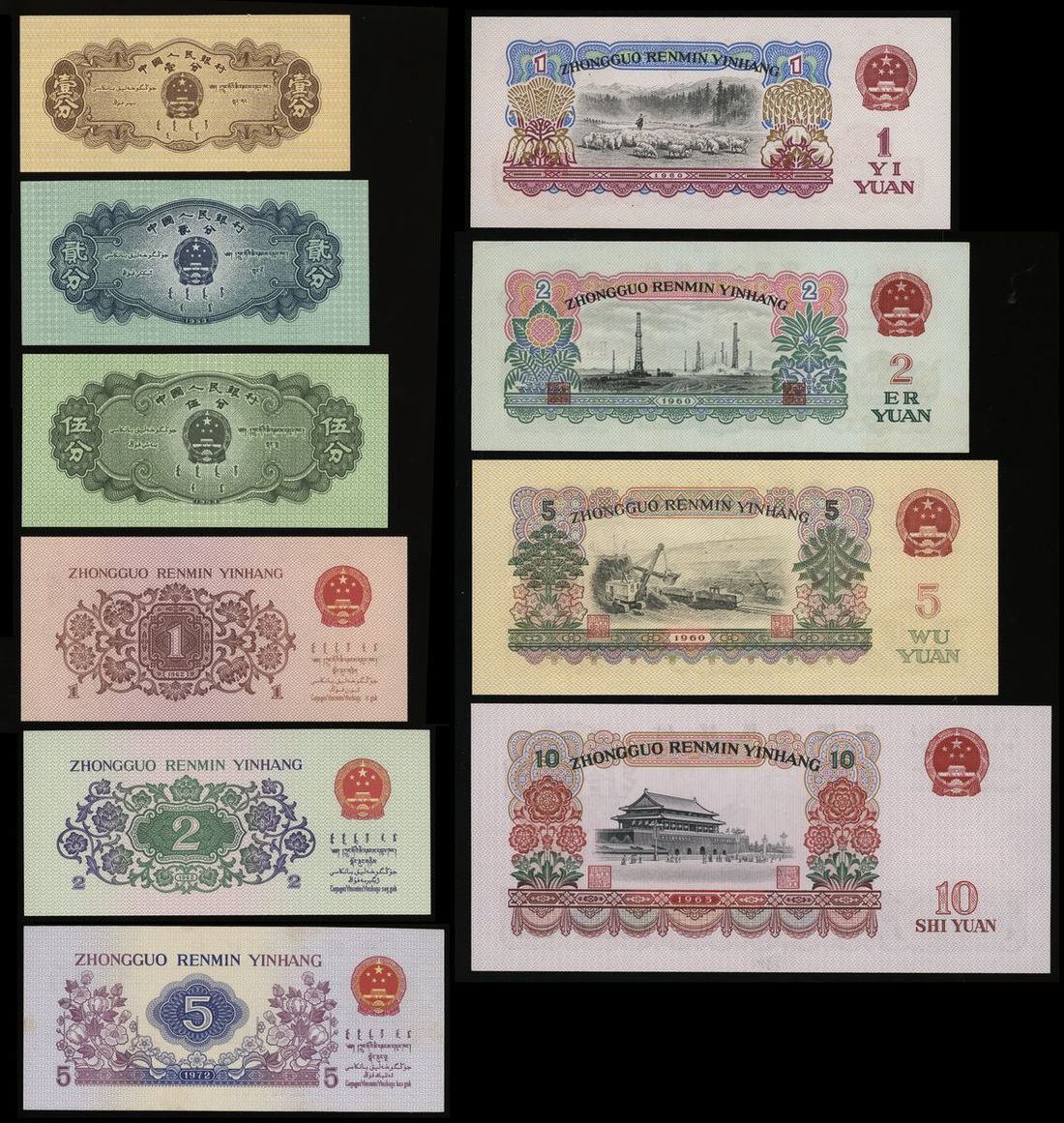 People's Bank of China, 2nd / 3rd Series Renminbi (10), 1953-74, including, 1, 2 and 5 fen (prefix only), 1, 2 and 5 jiao, 1, 2 (star watermark), 5 and 10 yuan,