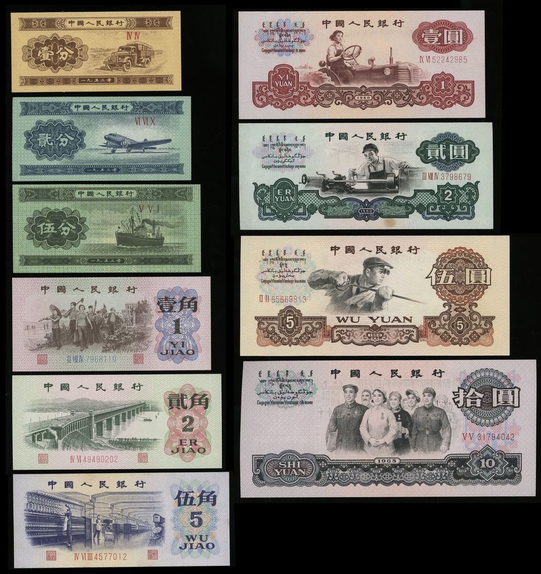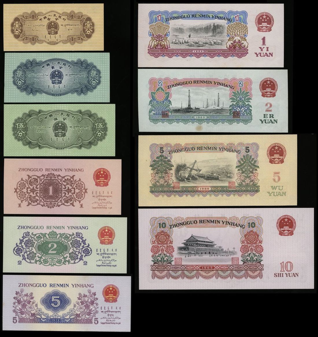 People's Bank of China, 2nd / 3rd Series Renminbi (10), 1953-74, including, 1, 2 and 5 fen (prefix only), 1, 2 and 5 jiao, 1, 2 (star watermark), 5 and 10 yuan,