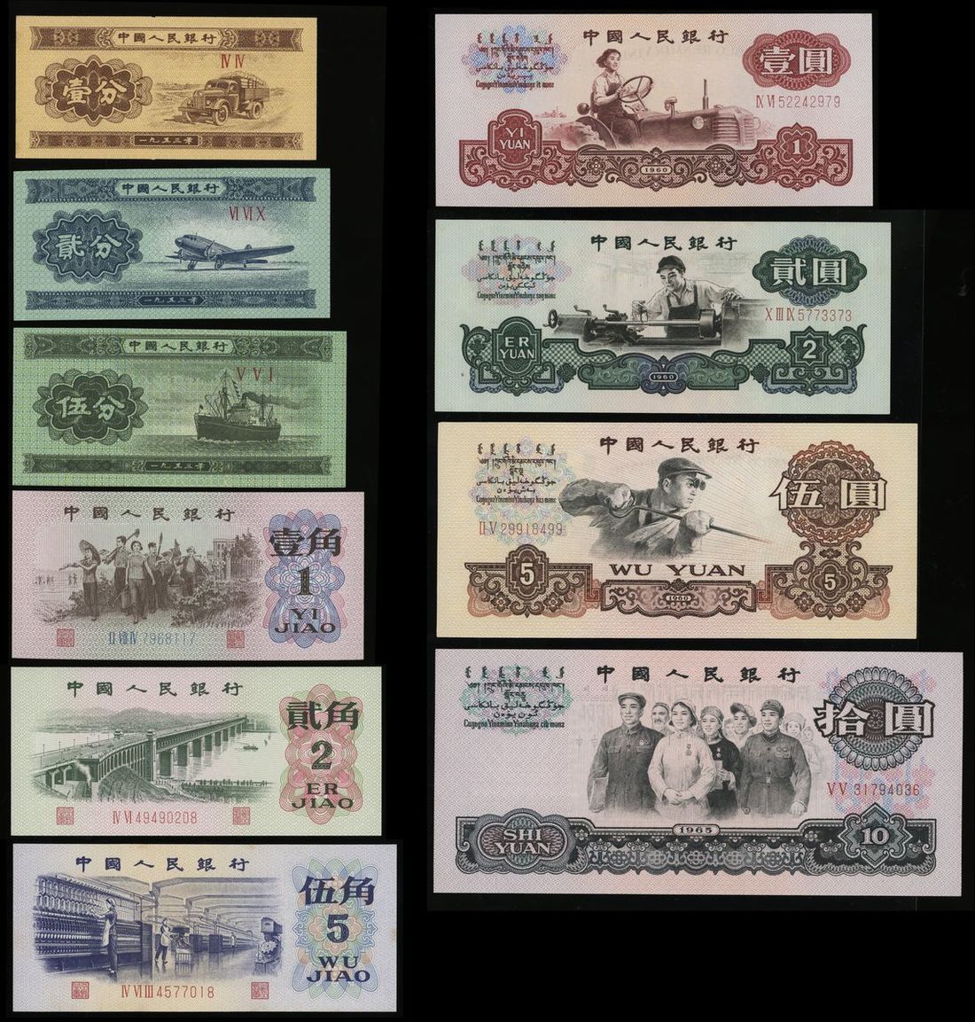 People's Bank of China, 2nd / 3rd Series Renminbi (10), 1953-74, including, 1, 2 and 5 fen (prefix only), 1, 2 and 5 jiao, 1, 2 (star watermark), 5 and 10 yuan,