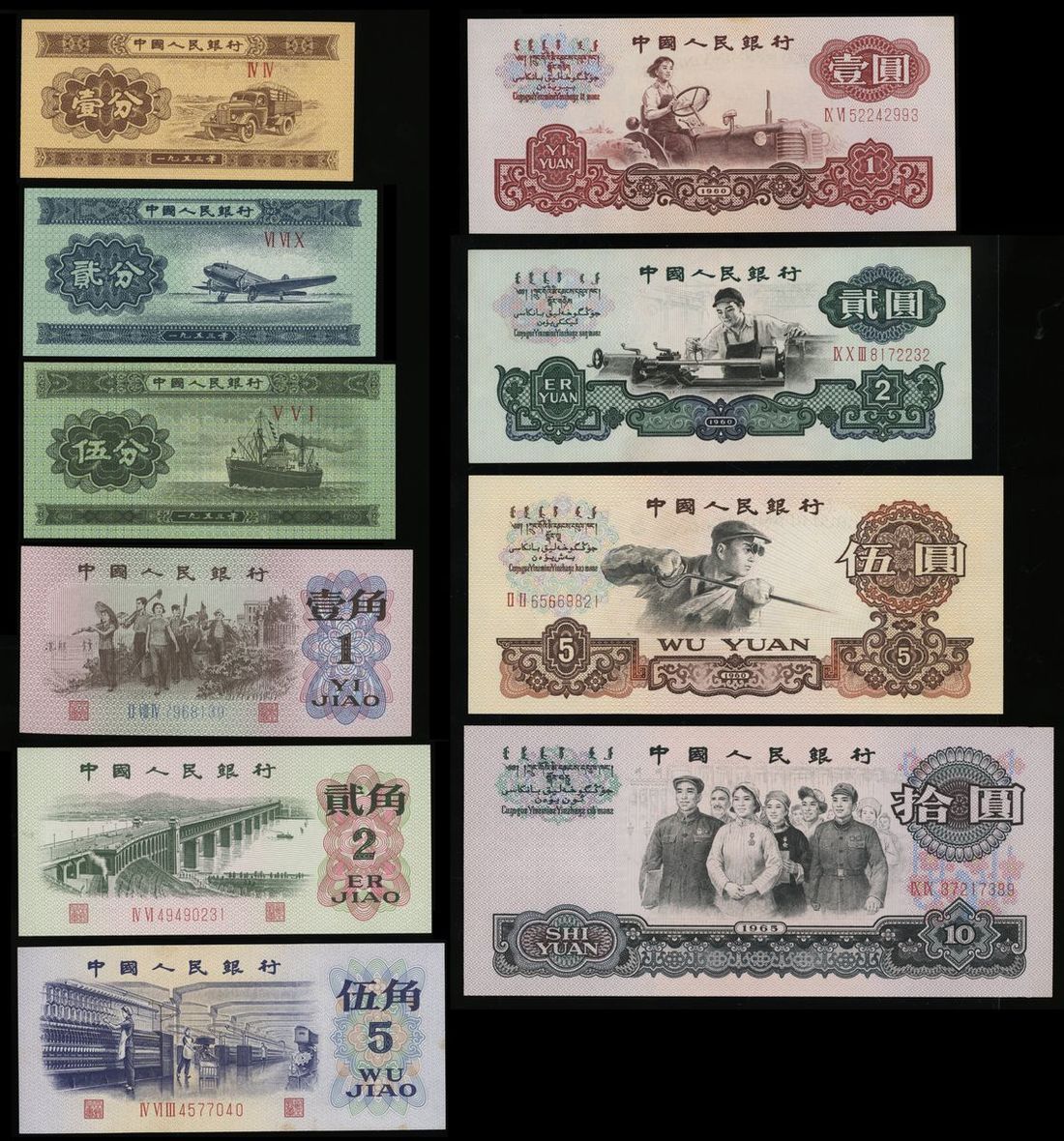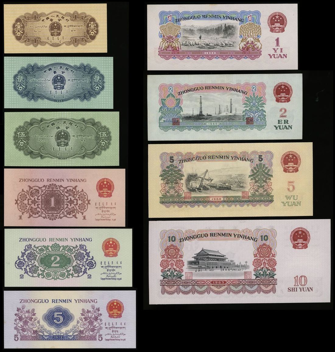 People's Bank of China, 2nd / 3rd Series Renminbi (10), 1953-74, including, 1, 2 and 5 fen (prefix only), 1, 2 and 5 jiao, 1, 2 (star watermark), 5 and 10 yuan,