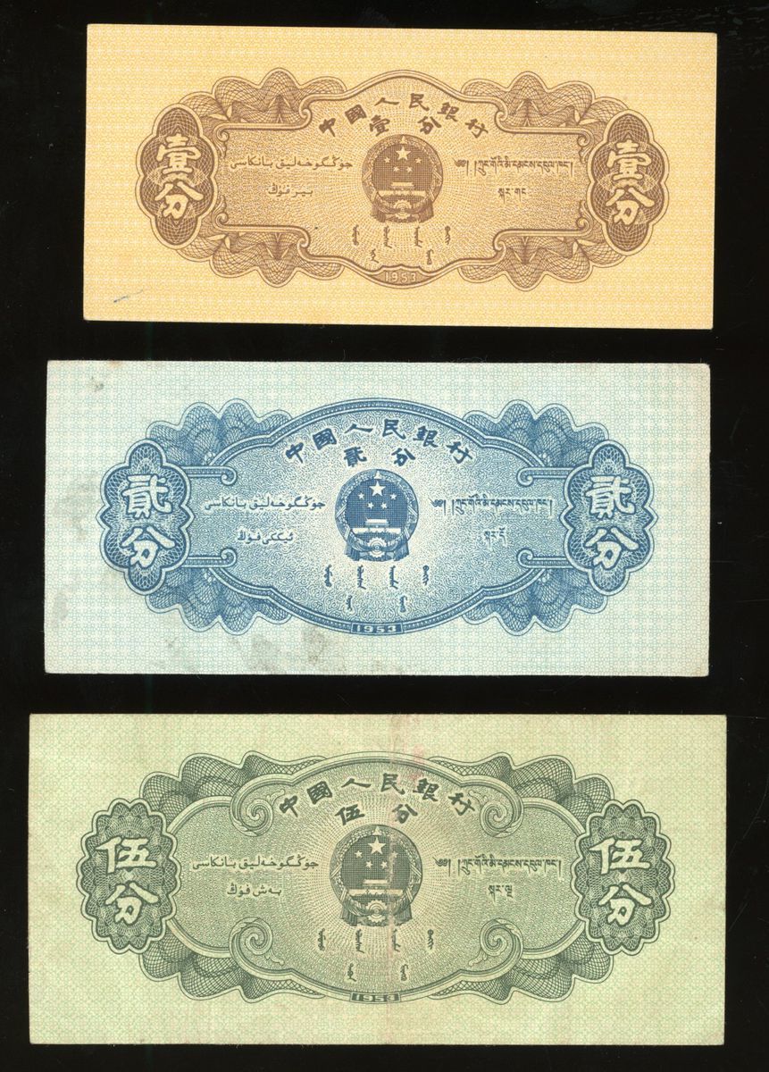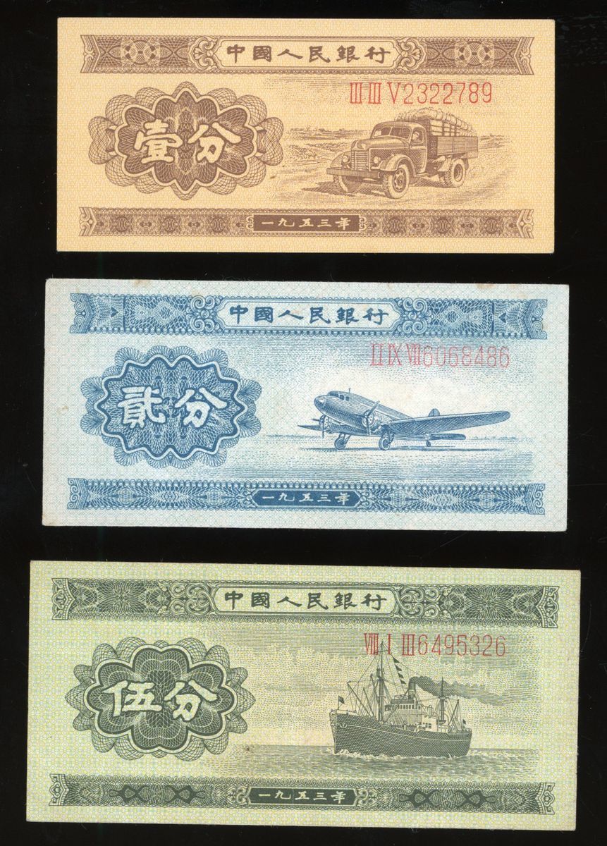 People's Bank of China, a group of 3x 1953, 1, 2 and 5 fen, serial numbers III III V 2322789, VIII I III 6495326, II IX VII 6068486, (Pick 860a-862a), VF-AU, view recommended (3)