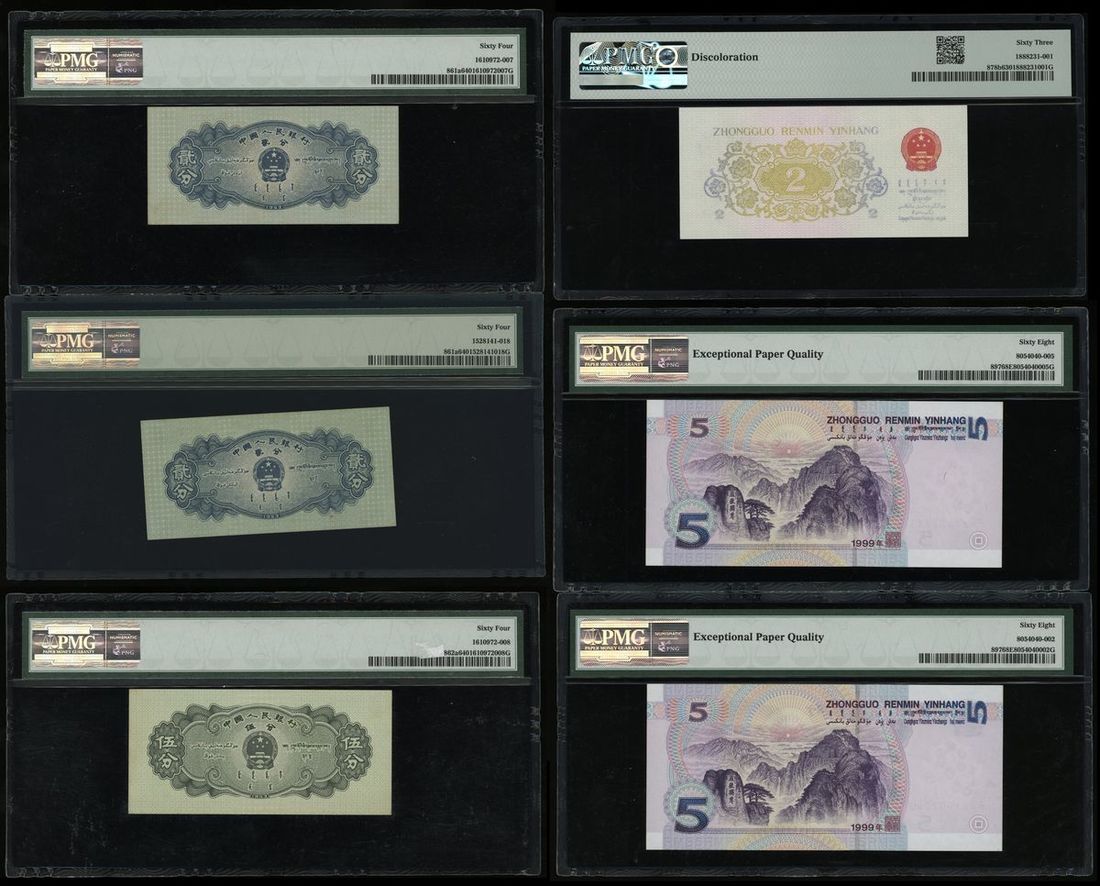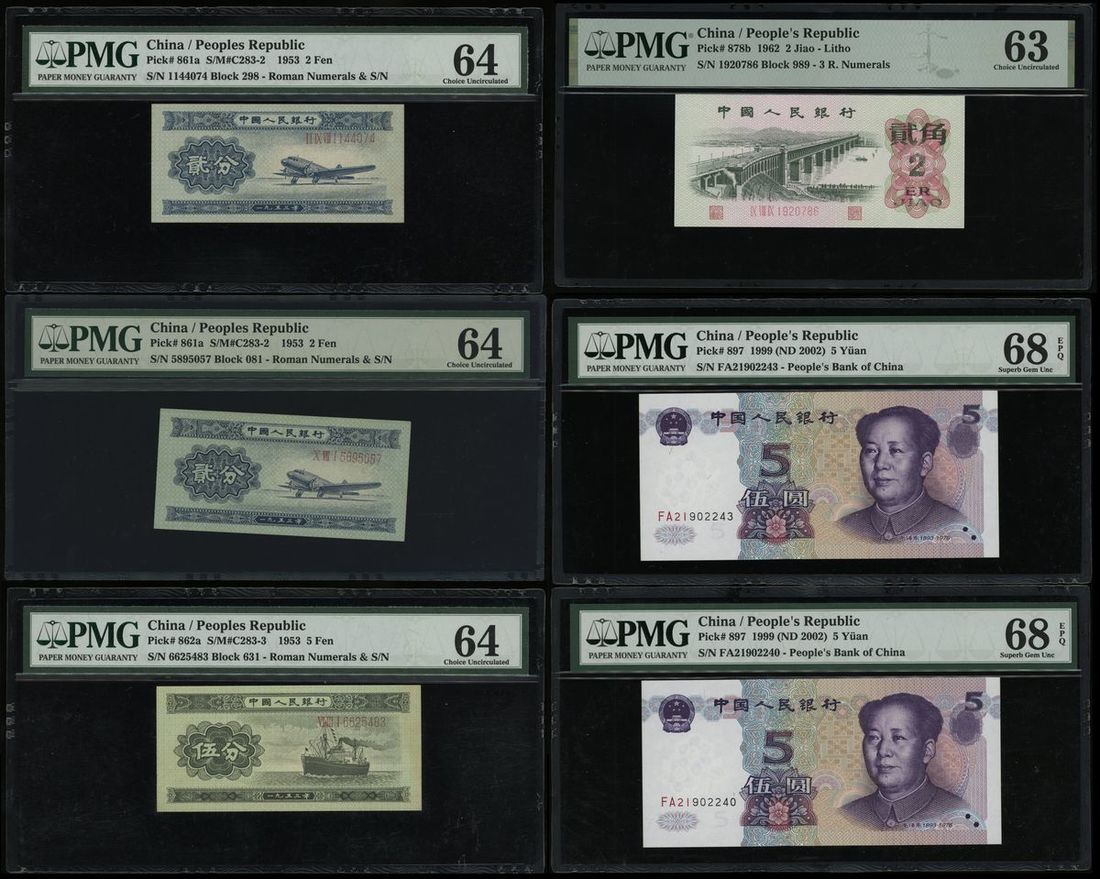 People's Bank of China, a group of 6, including: -2nd Series Renminbi 2x 2 fen, 1953