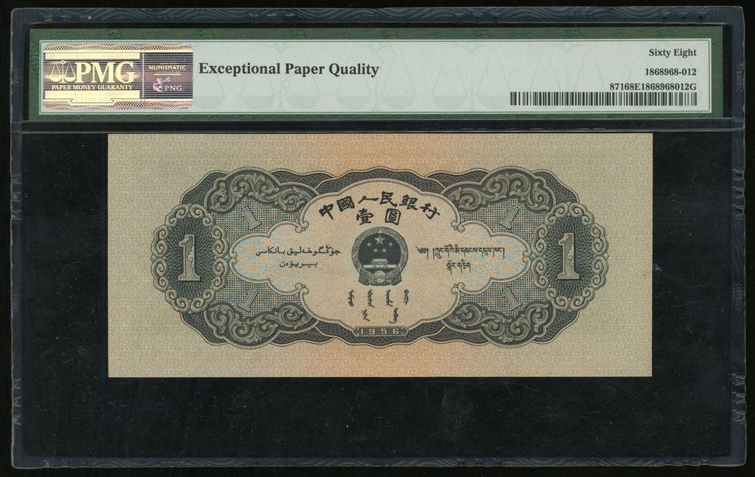 1956年中國人民銀行第二版壹圓,編號 I X III 0501537,PMG 68EPQ,PMG僅有24枚更高評分
