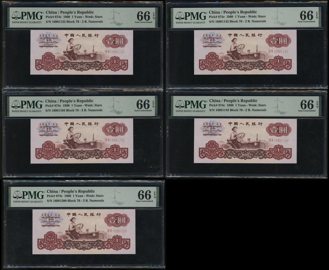 (Pick 874c), all graded PMG 66EPQ Gem Uncirculated (5)