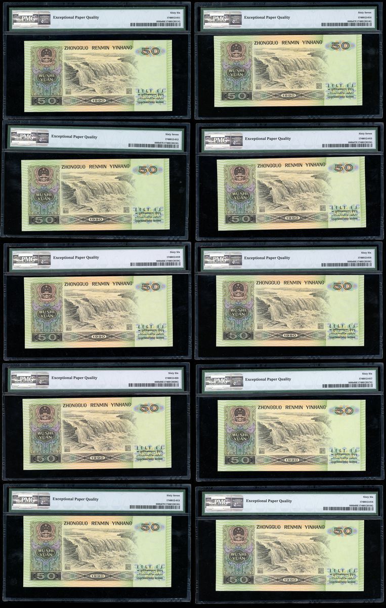 People's Bank of China, 4th Series Renminbi, 1990, consecutive 50 yuan (10), serial number XD11284711-20, (Pick 888b), PMG 66-67EPQ (10)