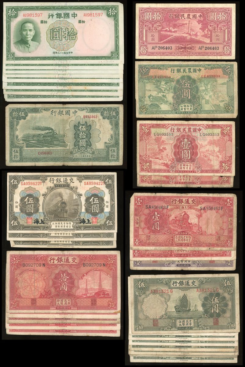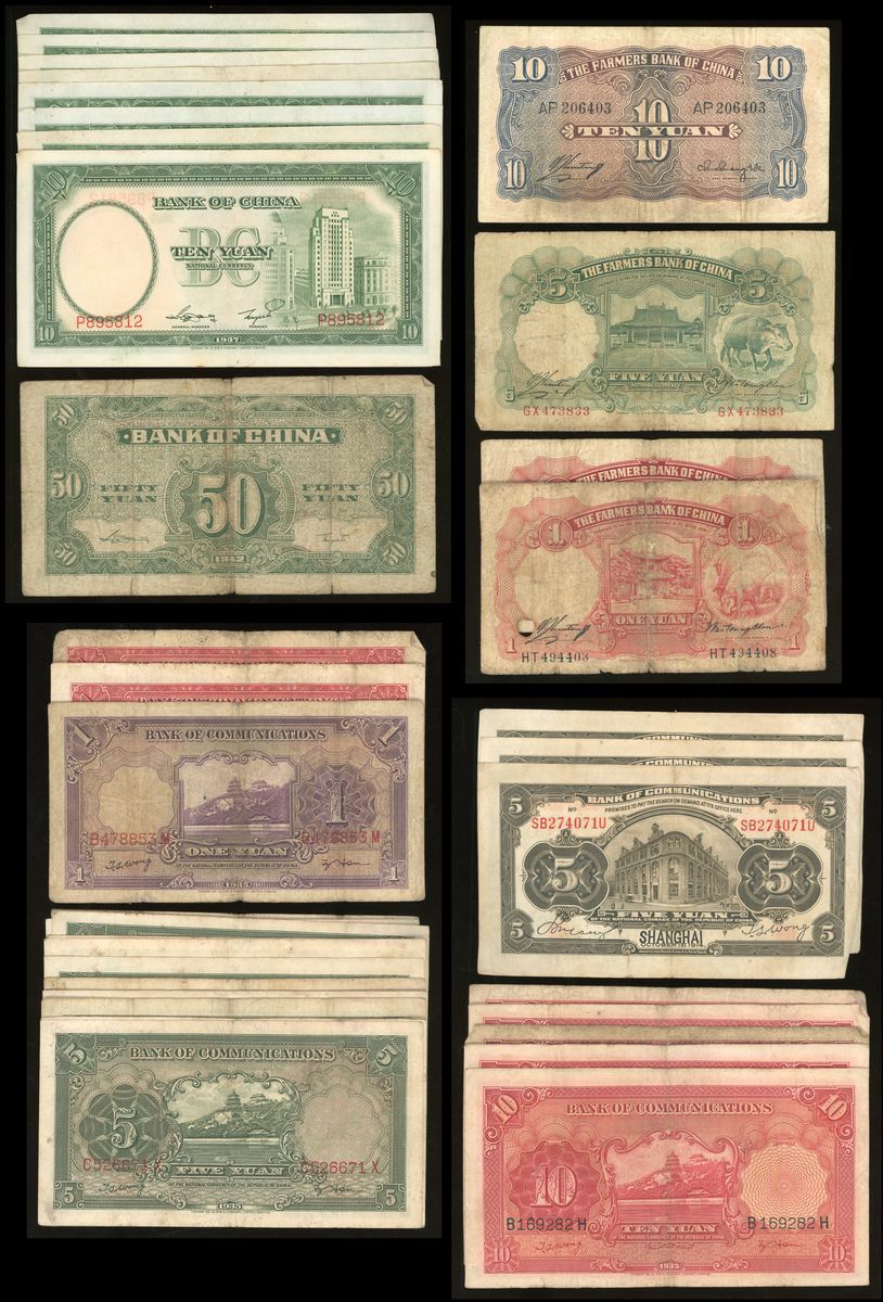 -Bank of Communications, 5 yuan (3) 1914, 1 yuan (2) 1931, 1 yuan (1), 5 yuan (14), 10 yuan (5) 1935,