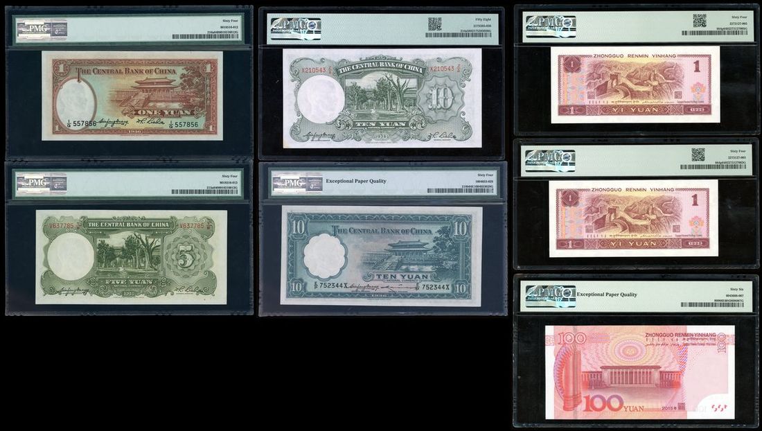 (Pick 216a, 213a, 218b, 214a, 884g, 909), all PMG graded, 58, 4x64, 64EPQ and 66EPQ.(7)
