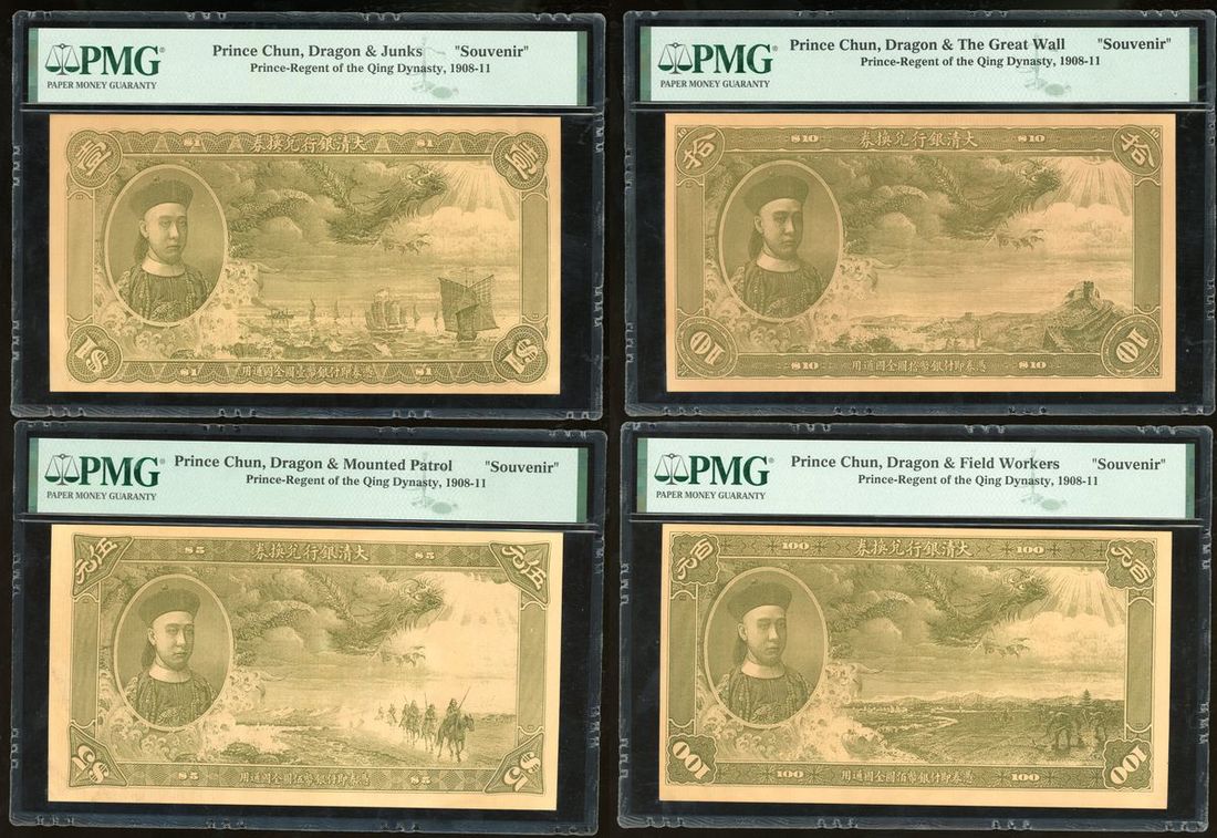 Ta-Ching Government, China, a group of 4x souvenir notes, including 1, 5, 10 and 100 yuan in green, with Prince Chun, all encapsulated by PMG (4)