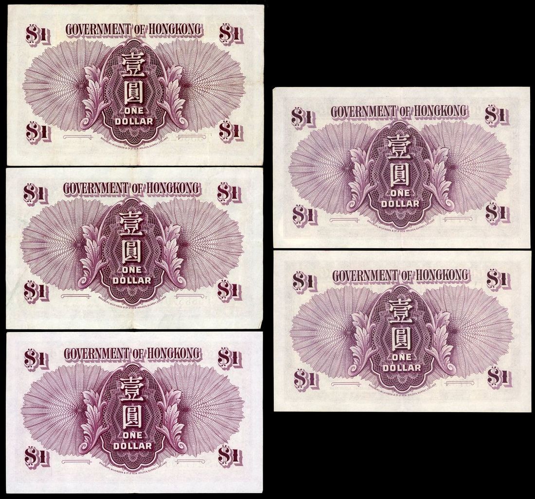 Government of HongKong, $1 (5), ND (1936), prefixes P, S, T, (Pick 312), all original extremely fine (5)