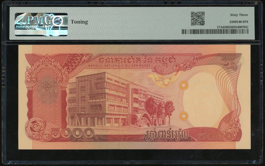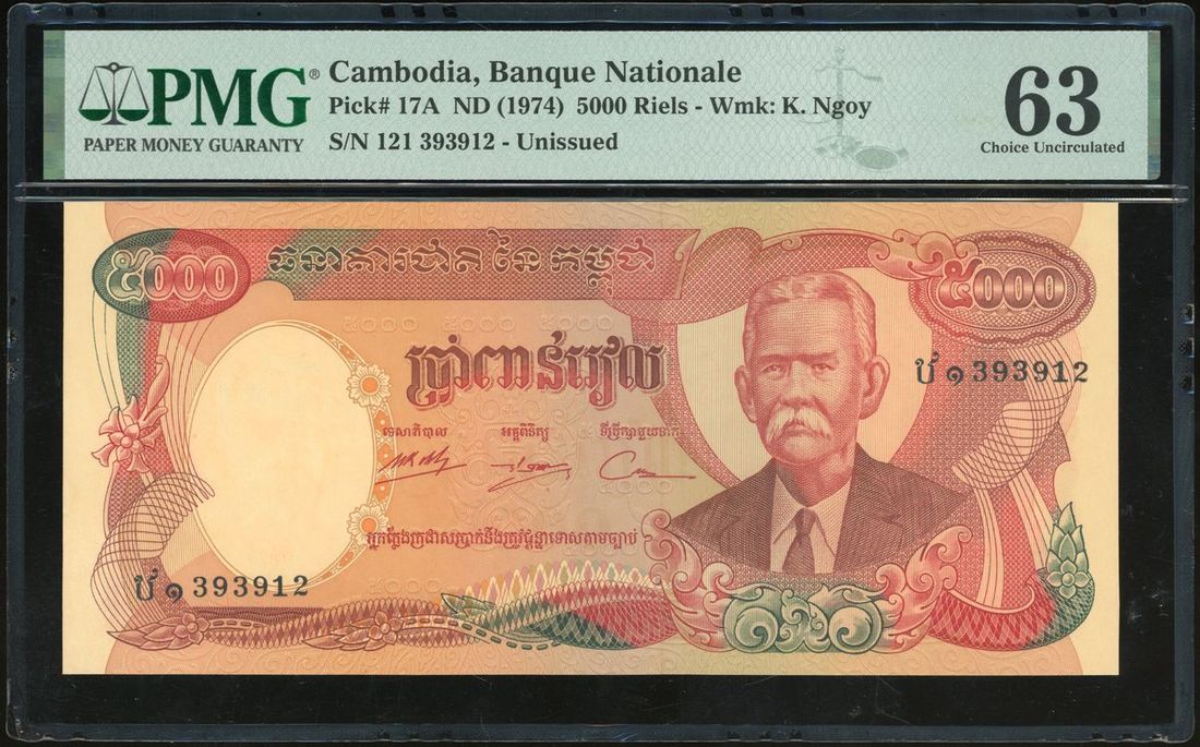 Banque Nationale du Cambodge, Cambodia, 5000 riels, ND (1974), serial number 121 393912, (Pick 17A), PMG 63
