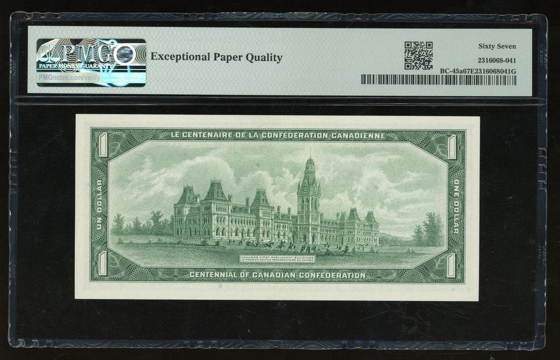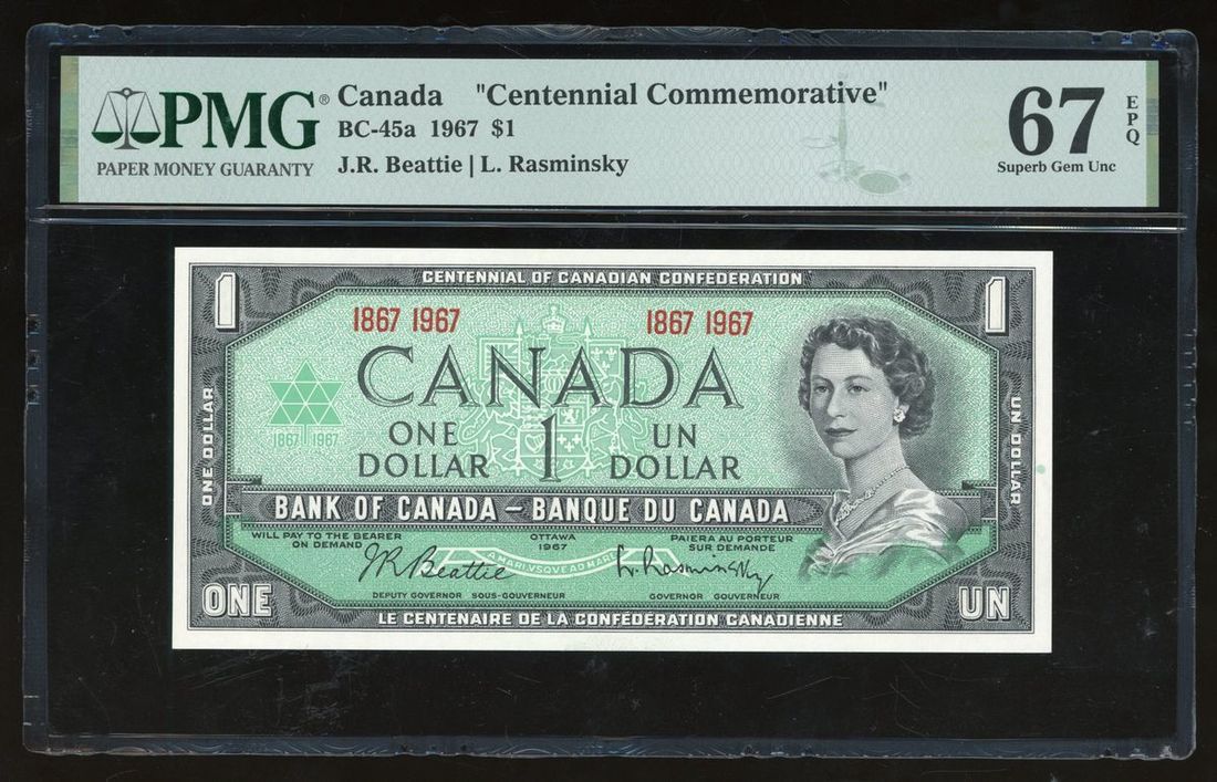 Bank of Canada, $1, 1967, Centennial Commemorative, (Pick 84a), PMG 67EPQ