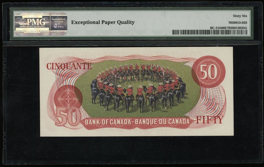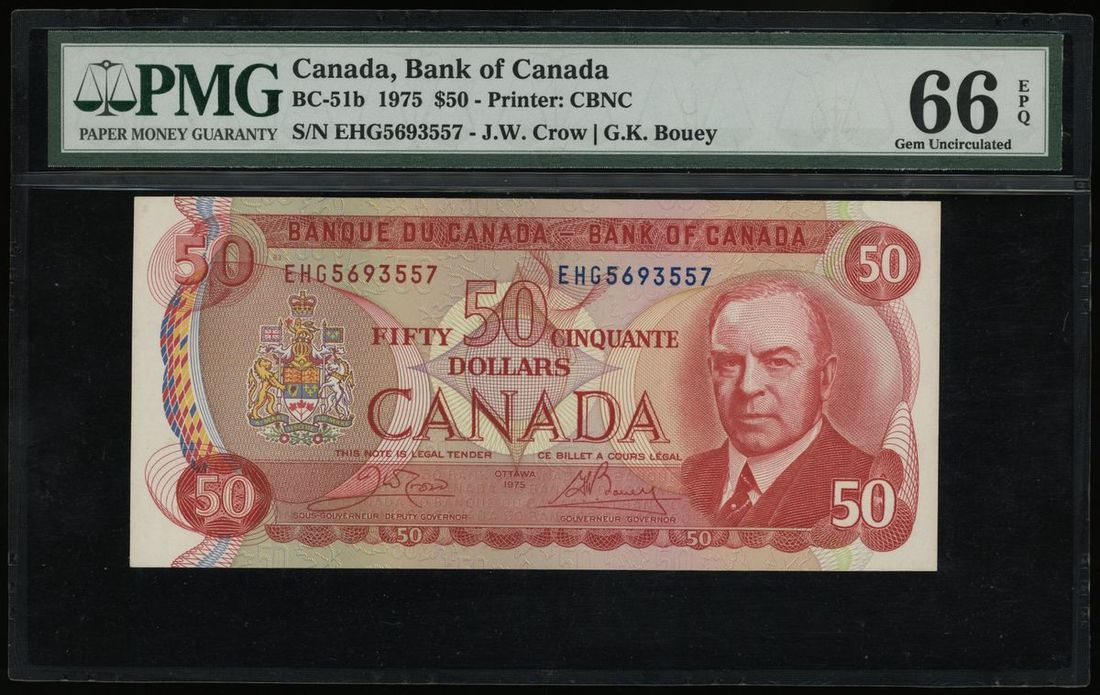 1975年加拿大50元,編號EHG5693557,PMG 66EPQ