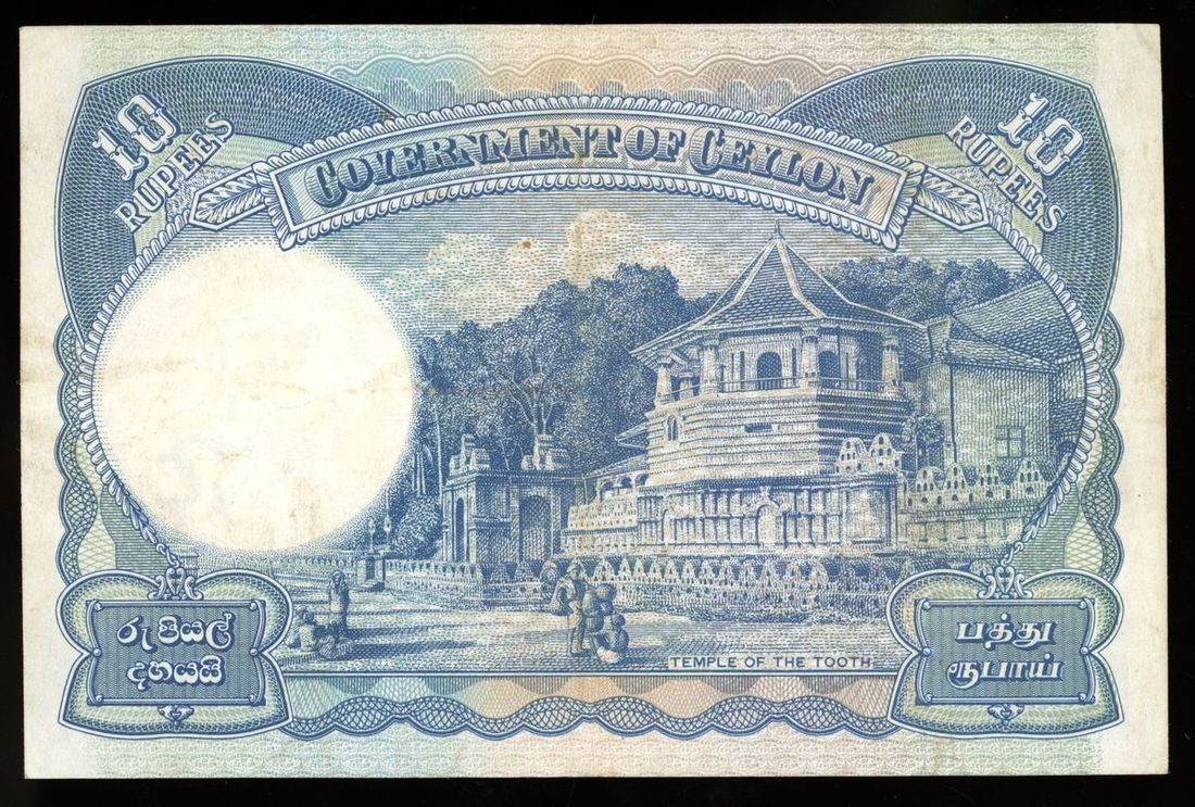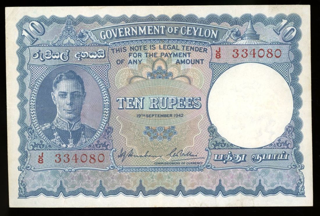 Government of Ceylon, 10 rupees, 19.9.1942, serial number J/8 334080, (Pick 36A), lightly pressed, very fine