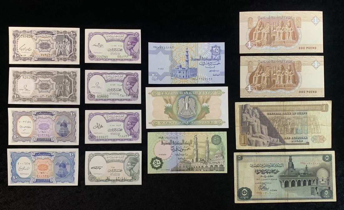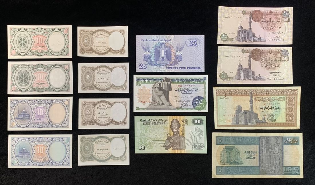 Egypt, a group of 15 notes including 4x 5 piastres, 4x 10 piastres, 2x 25 piastres, 1x 50 piastres, 3x £1 and 1x £5, various dates and design,