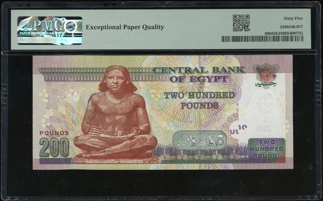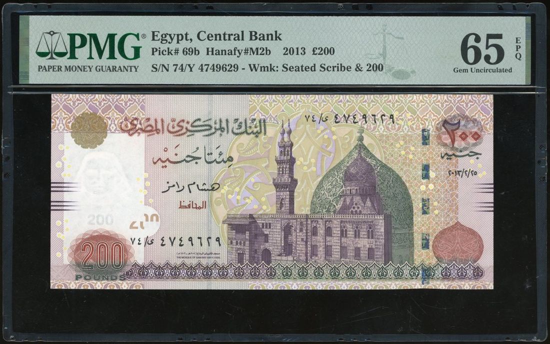 Central Bank of Egypt, 200 pounds, 2013, serial number 74/Y 4749629, (Pick 69b), PMG 65EPQ, only 3 finer examples in the PMG census