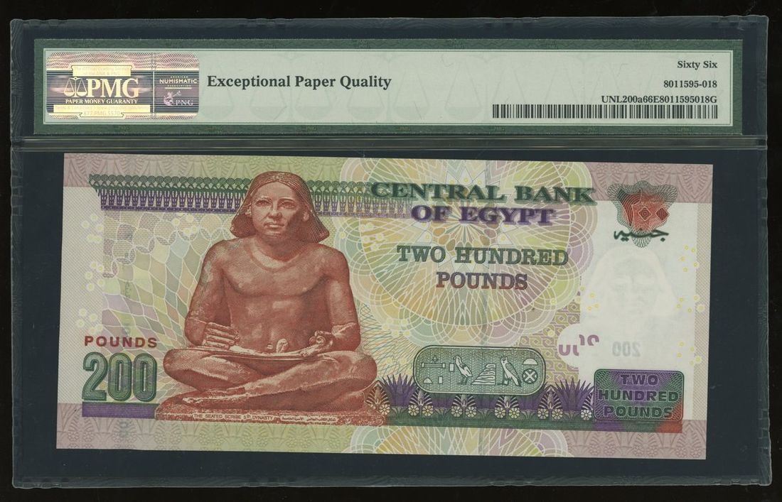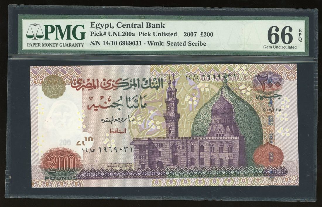 Central Bank of Egypt, £200, 2007, serial number 14/10 6969031, PMG 66EPQ
