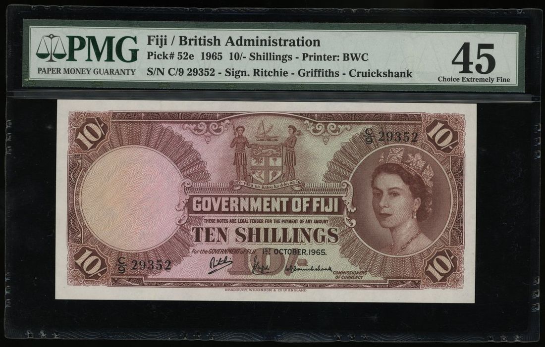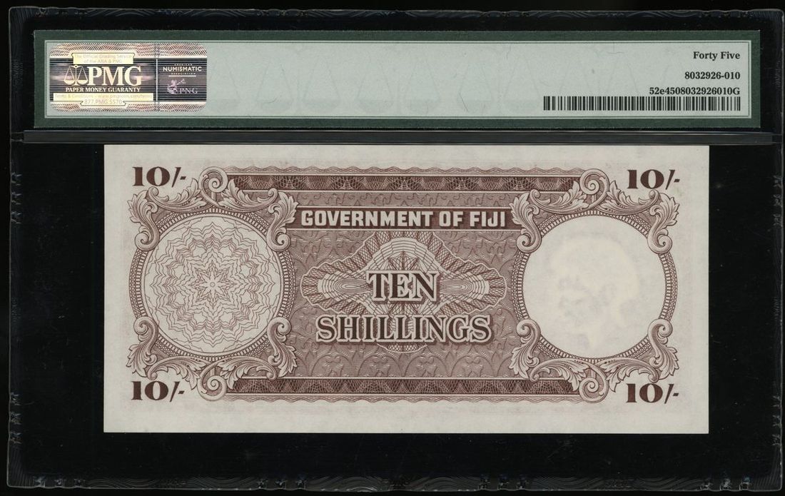 1965年斐濟10先令, 編號 C/9 29352,PMG 45
