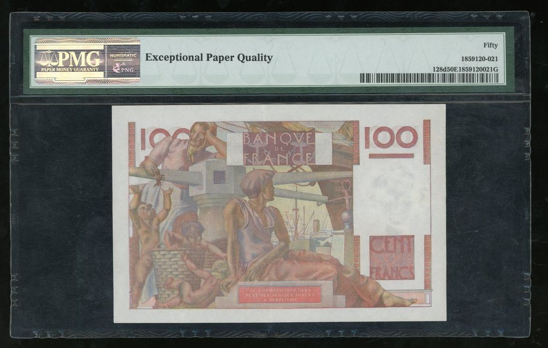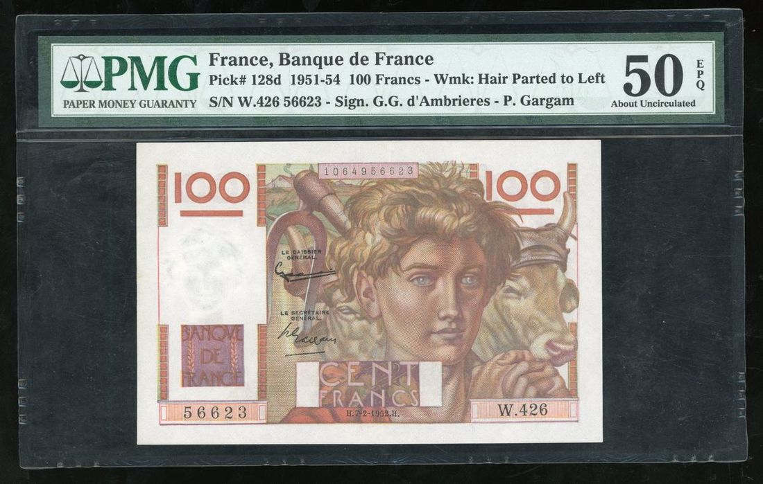Banque de France, 100 francs, ND (1951-54), serial number W.426 56623, (Pick 128d), PMG 50EPQ