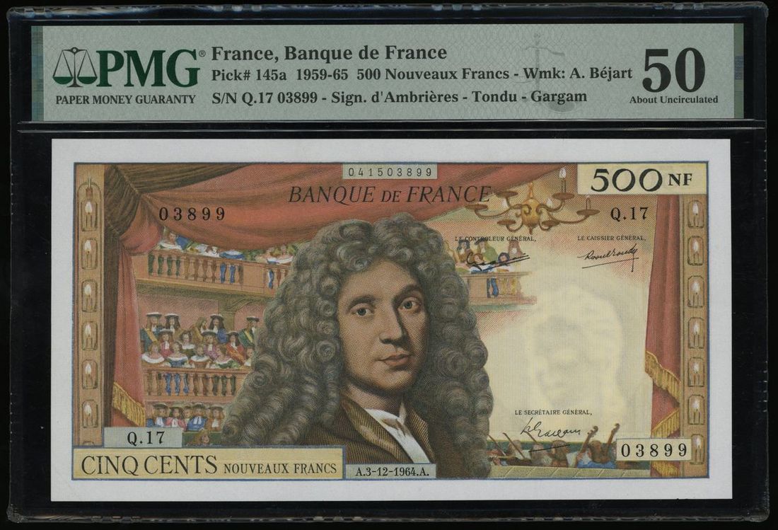 1964年法國500法郎,編號 Q. 17 03899,PMG 50