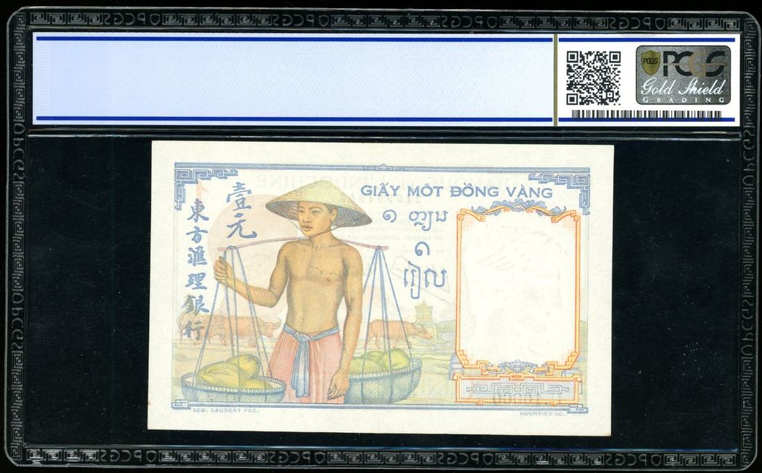 Banque de l'Indo-Chine, French Indo China, 1 piastre, ND (1946), serial number U.10000 003, (Pick 54c), PCGS 64.