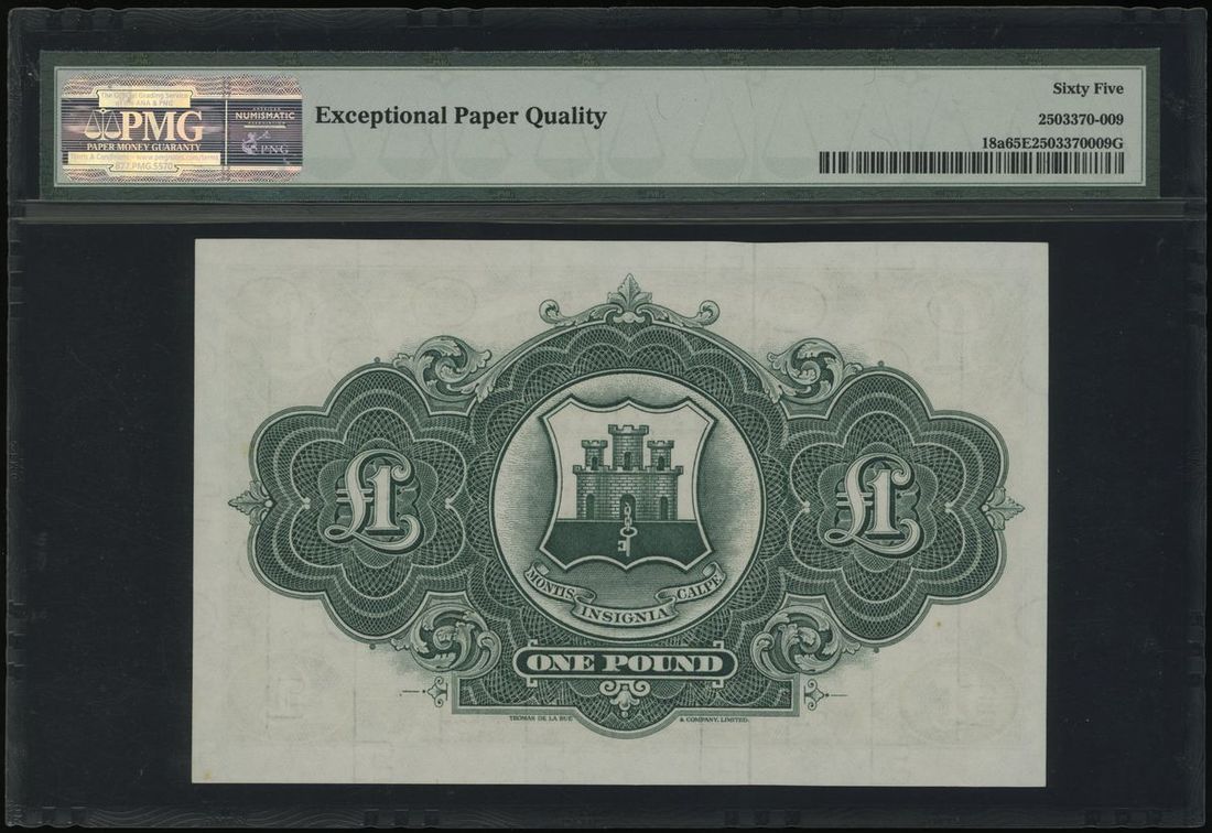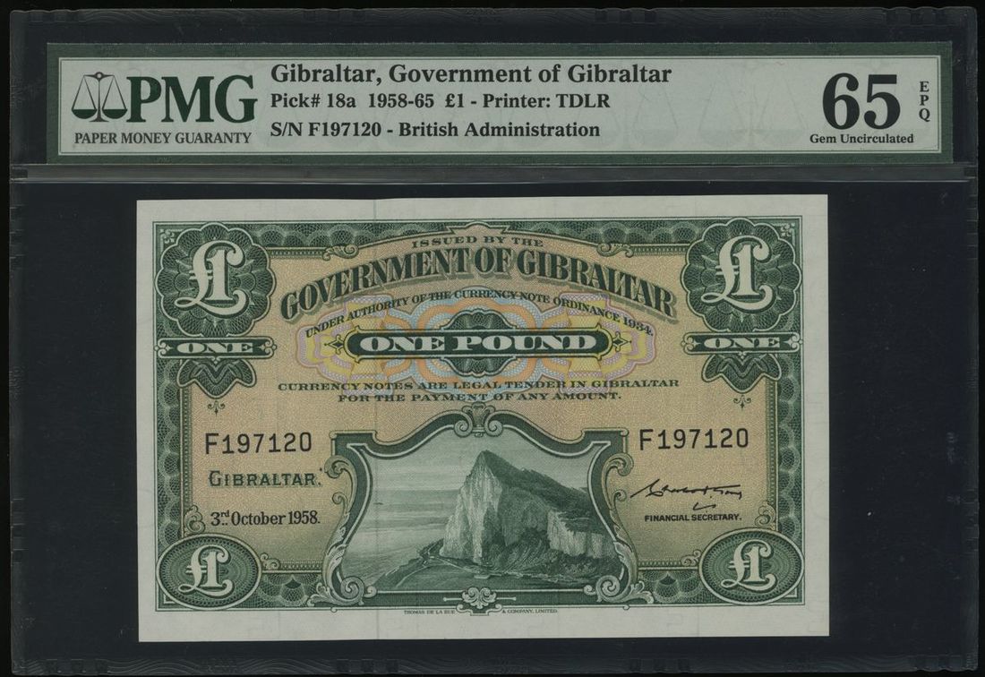 Government of Gibraltar, £1, 1958, serial number F 197120, (Pick 18a), PMG 65EPQ Gem Uncirculated, fourth highest grade in the PMG population report