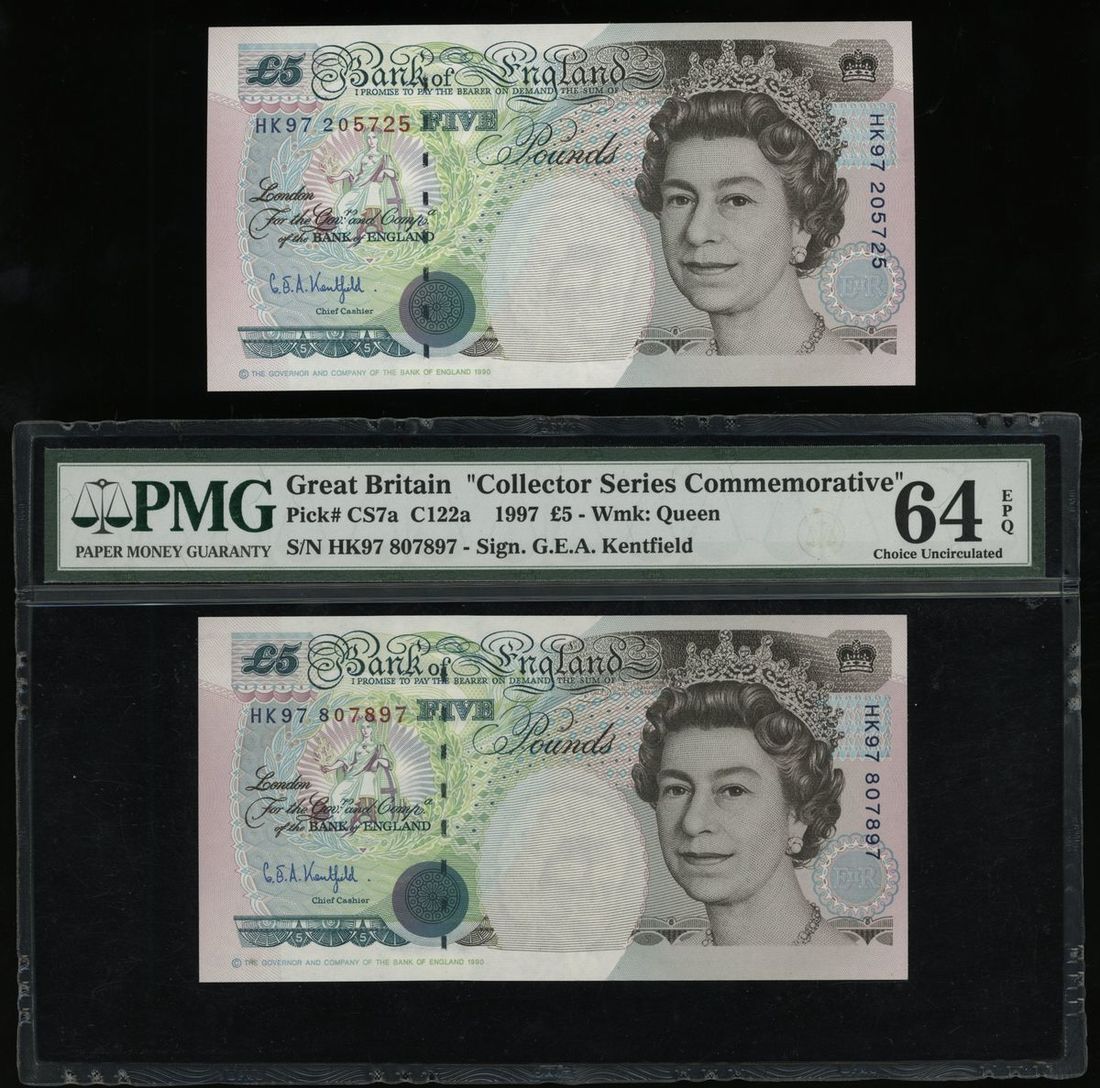 Bank of England, Great Britain, a pair of £5, 1997, Handover of Hong Kong to China, serial numbers HK97 807897 and HK97 205725,