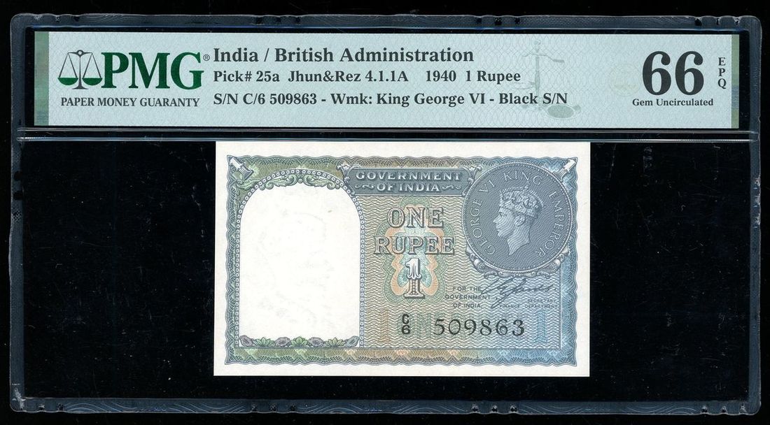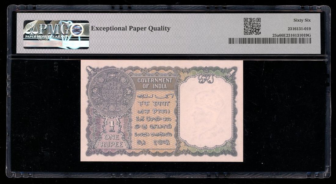 Government of India, 1 rupee, 1940, serial number C/6 509863, (Pick 25a), PMG 66EPQ