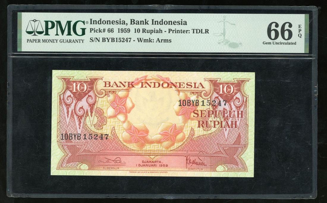 Bank Indonesia, 10 rupiah, 1959, serial number BYB15247, (Pick 66), PMG 66EPQ