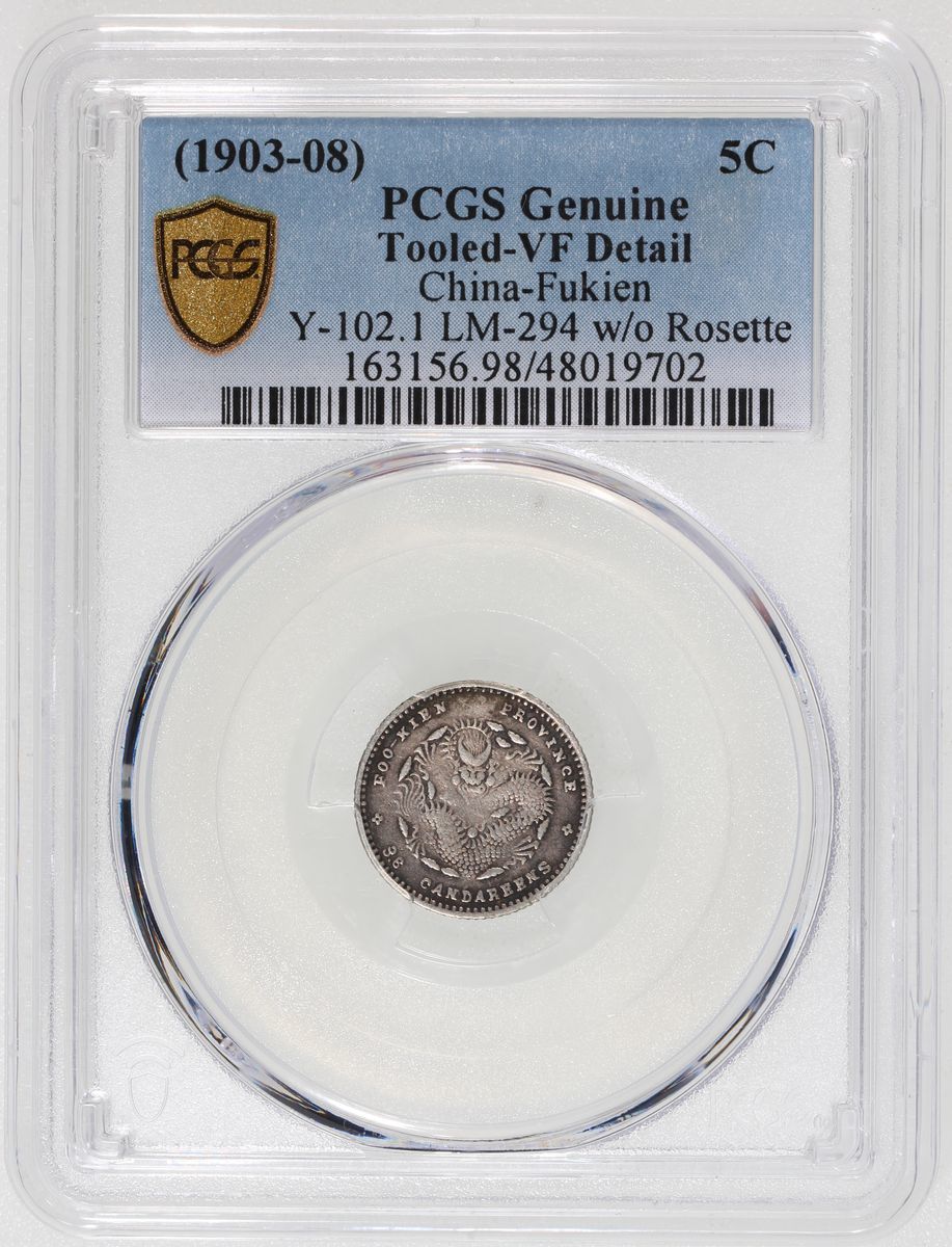 China, Qing Dynasty, Fukien Province, [PCGS VF Detail] silver 5 cents, Guangxu Yuan Bao(1903-08), cartoon dragon, without rosette, (LM-294), PCGS VF Detail, tooled. Cert.# 48019702