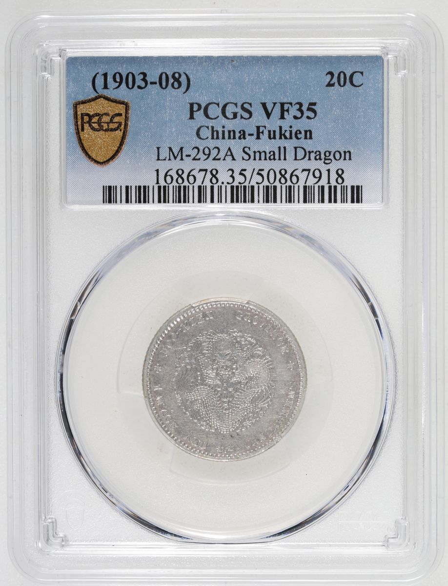 China, Qing Dynasty, Fukien Province, [PCGS VF35] silver 20 cents, ND (1903-1908), 'Guang Xu Yuan Bao', small dragon variety, (K-128A, LM-292A), Cert. #50867918, a lustrous example