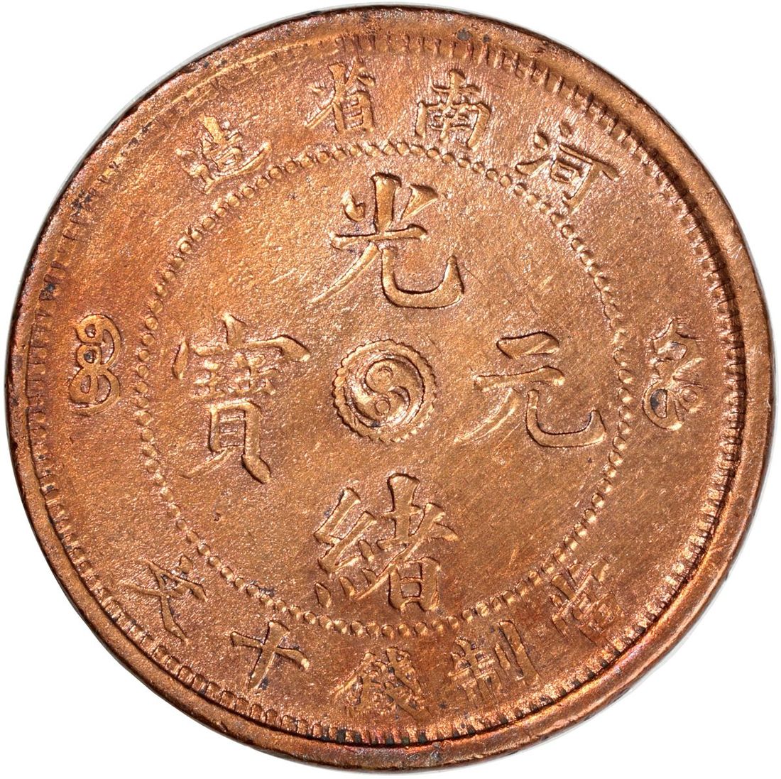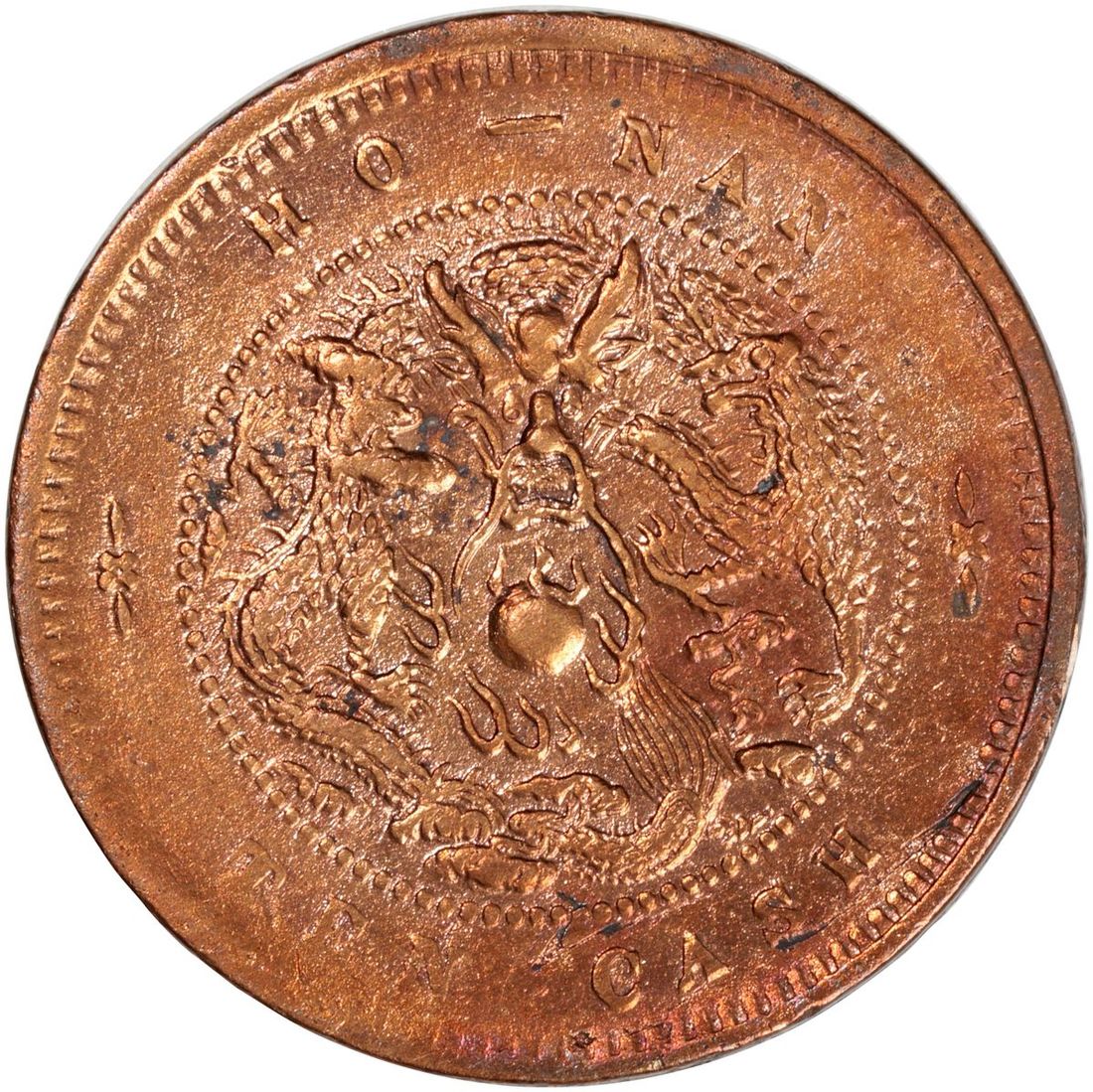 China, Qing Dynasty, Honan Province, copper 10 cash, ND (1905), 'Guang Xu Yuan Bao', dragon within beaded circle, pearl with three flames variety, (Y-108), About Uncirculated