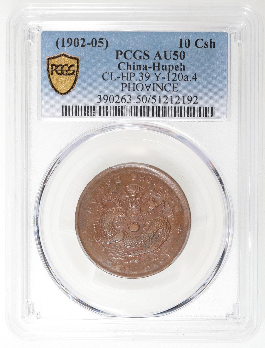 China, Qing Dynasty, Hupeh Province, [PCGS AU50] copper 10 cash, ND (1902-05), 'inverted 'A' for 'V'' type, (Y-120a.4), #51212192