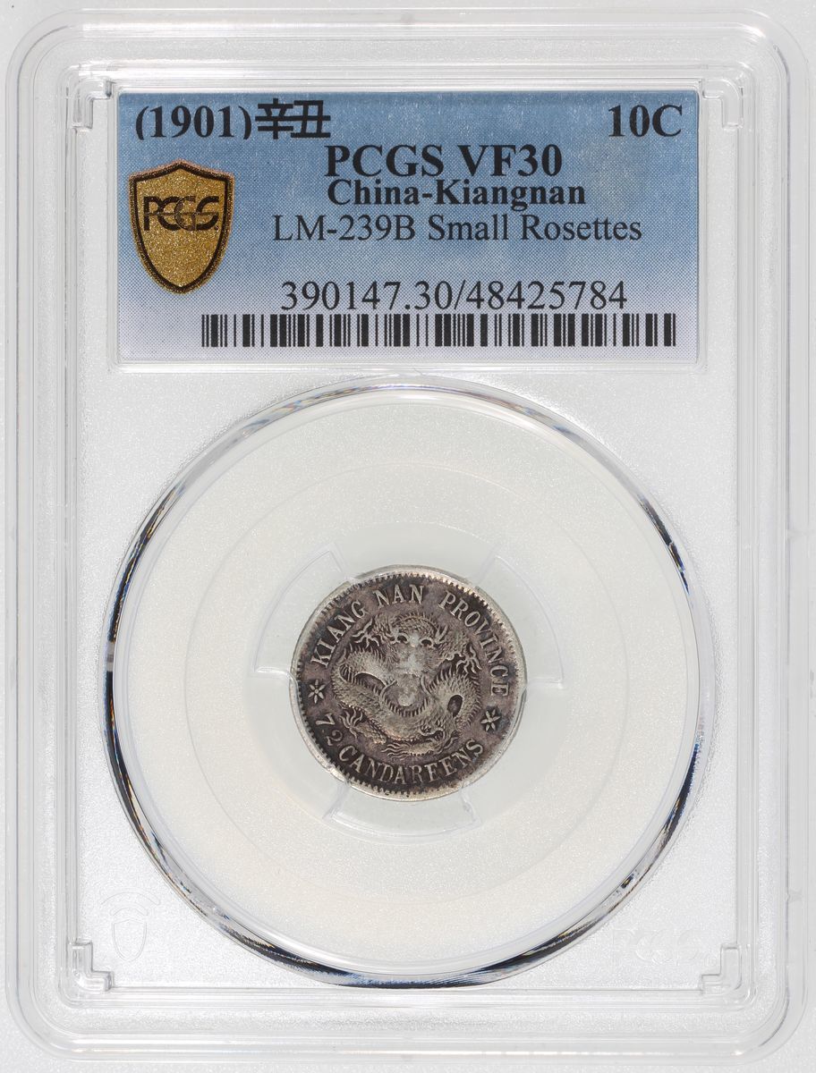 China, Qing Dynasty, Kiangnan Province, [PCGS VF30] silver 10 cents, Guangxu Yuan Bao, Xinzhou(1901), old dragon, small rosettes variant, (LM-239B), dark toned Cert.# 48425784