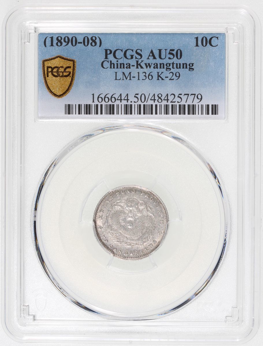 China, Qing Dynasty, Kwangtung Province, [PCGS AU50] silver 10 cents, Guangxu Yuan Bao(1890-08), (LM-136), PCGS AU50. Cert.# 48425779