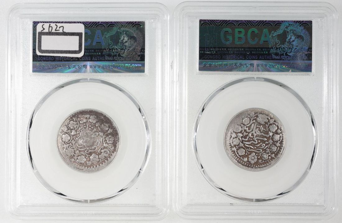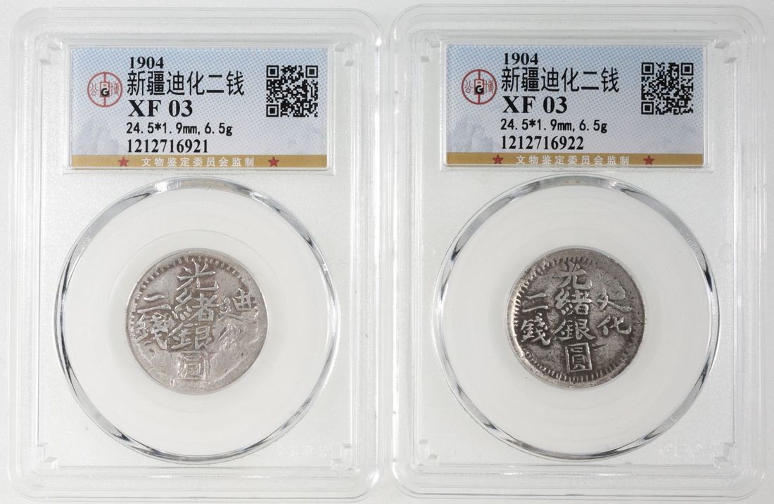 China, Sinkiang Province, [GBCA XF03] a pair of silver 2 mace, 1904, Guangxu Yinyuan, Dihua, Cert.# 1212716921,1212716922(2)
