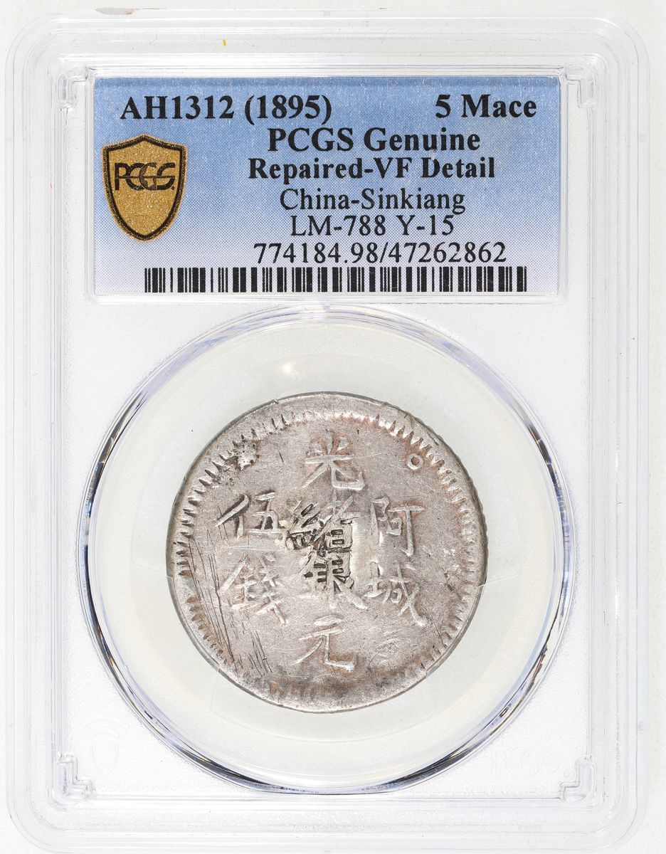 China, Qing Dynasty, Sinkiang Province, [PCGS VF Detail] silver 5 mace, AH1312 (1895), Aksu Mint, (LM-788), repaired. #47262862