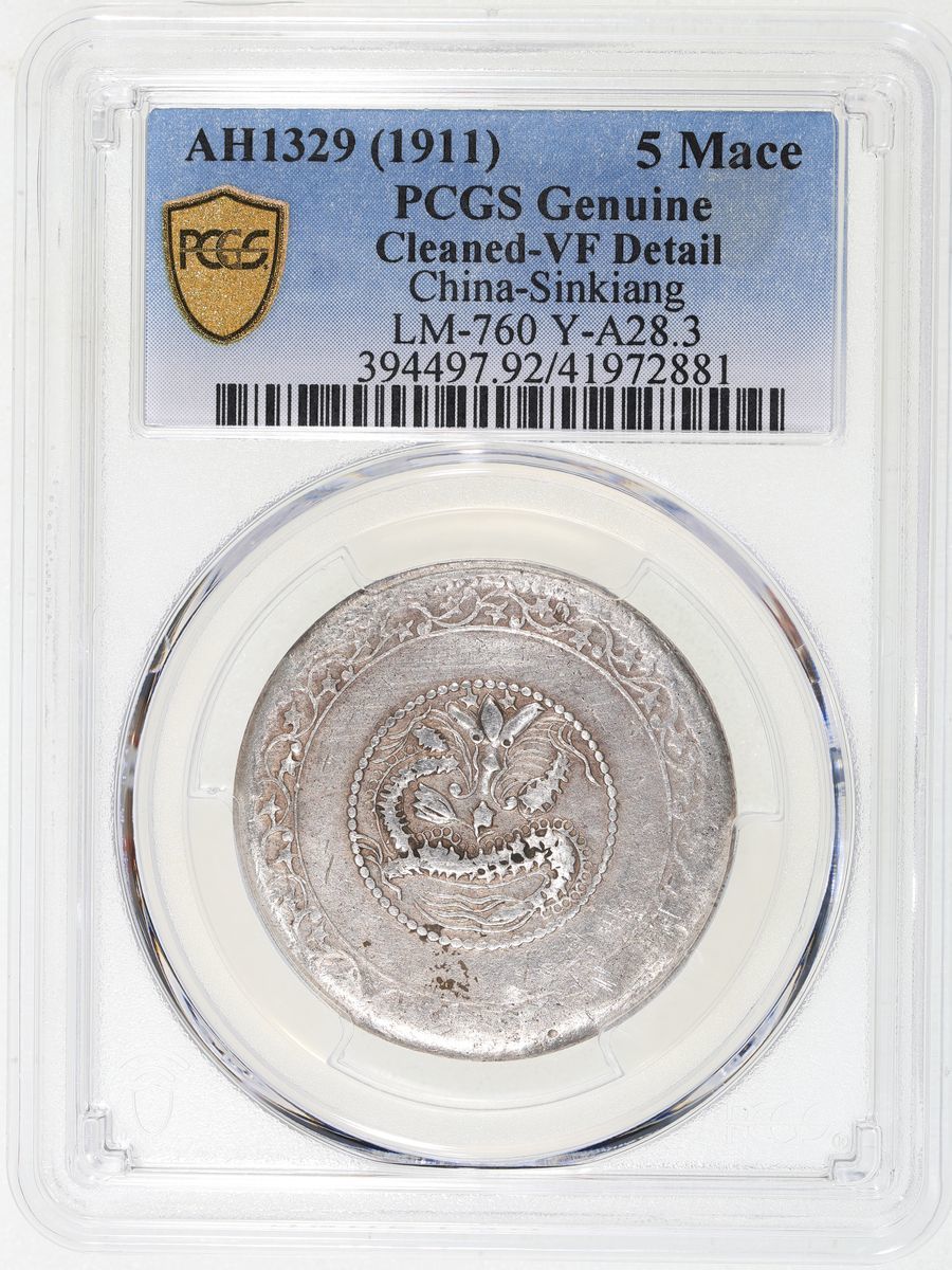 1911年新疆宣統元寶五錢,喀什,PCGS VF Detail,有清洗