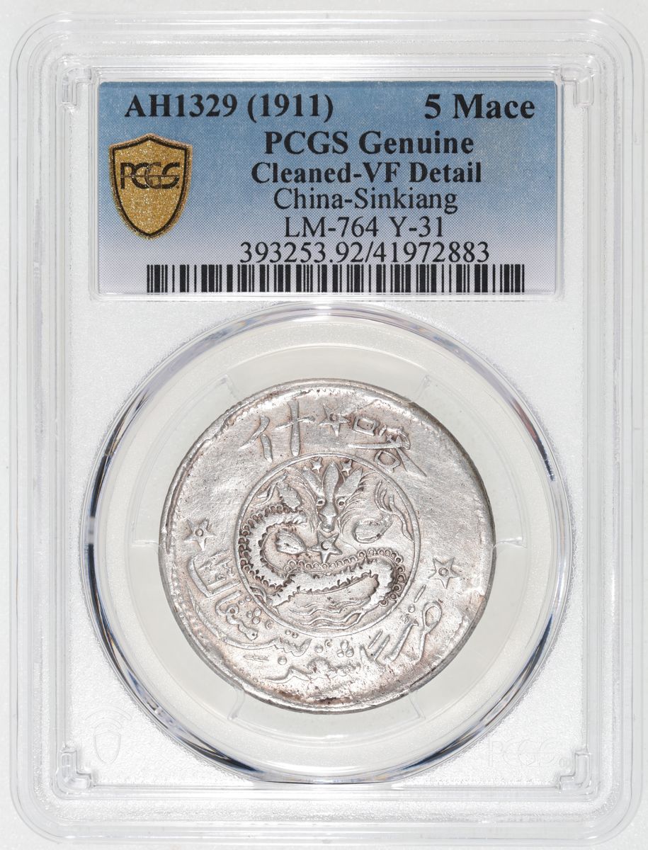 China, Qing Dynasty, Sinkiang Province, [PCGS VF Detail] silver 5 mace, AH1329 (1911), (LM-764, Y-31),